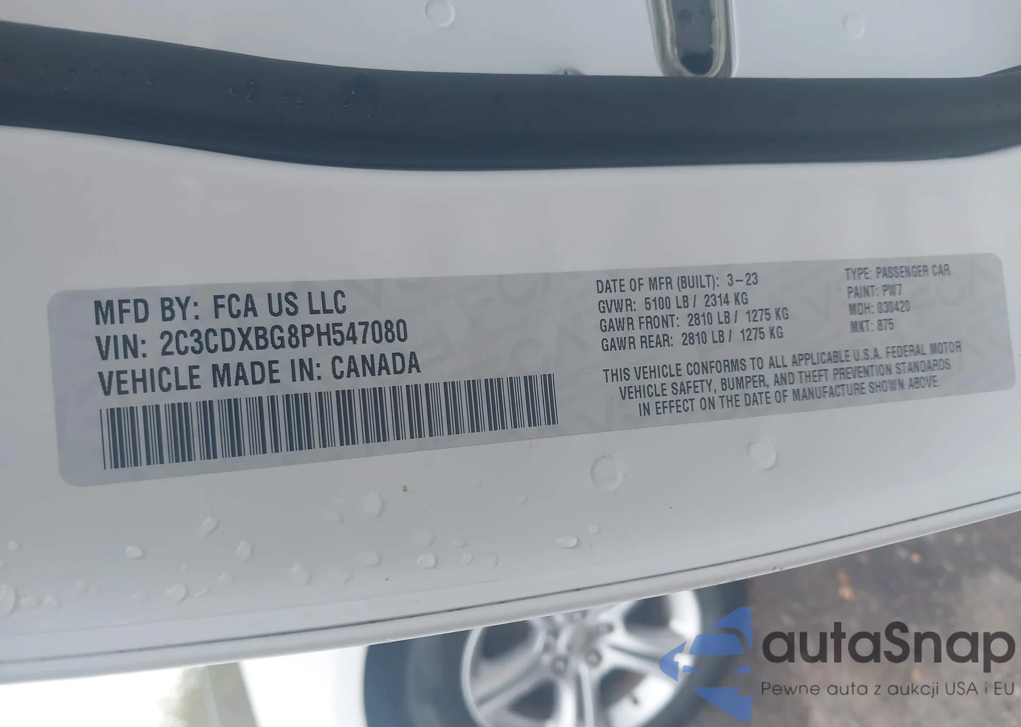 • VIN: 2C3CDXBG8PH547080
