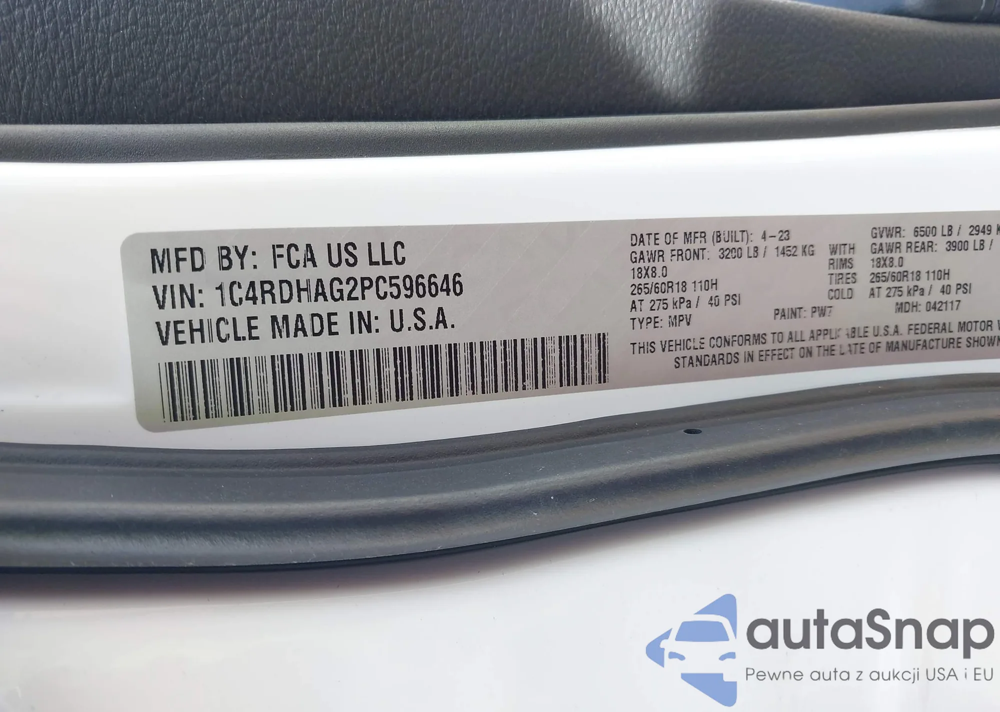 • VIN: 1C4RDHAG2PC596646