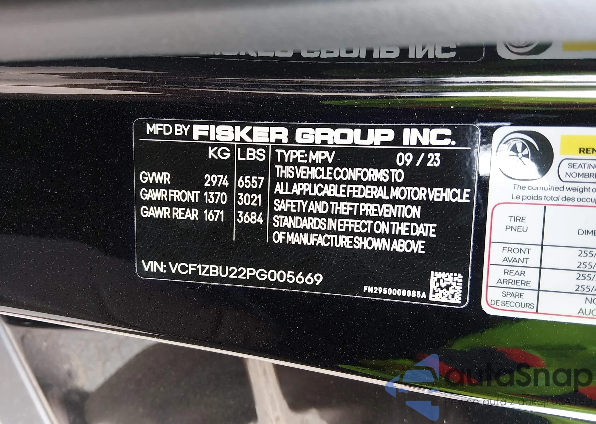 • VIN: VCF1ZBU22PG005669
