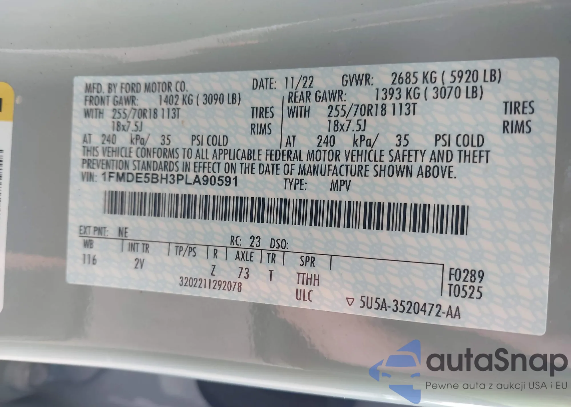 VIN: 1FMDE5BH3PLA90591