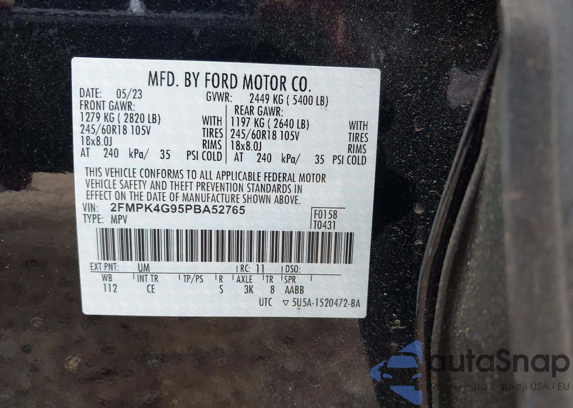 VIN: 2FMPK4G95PBA52765