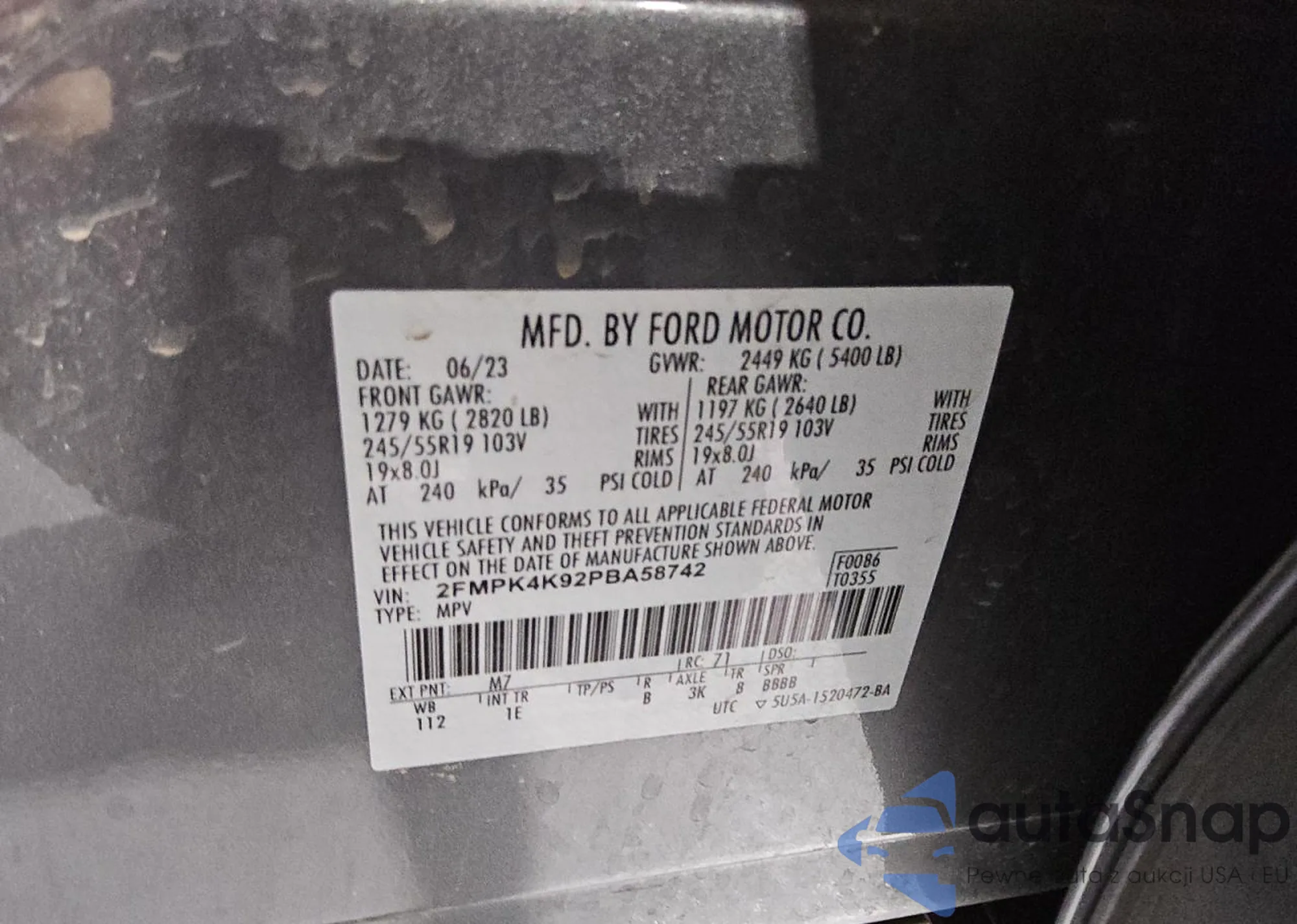 VIN: 2FMPK4K92PBA58742