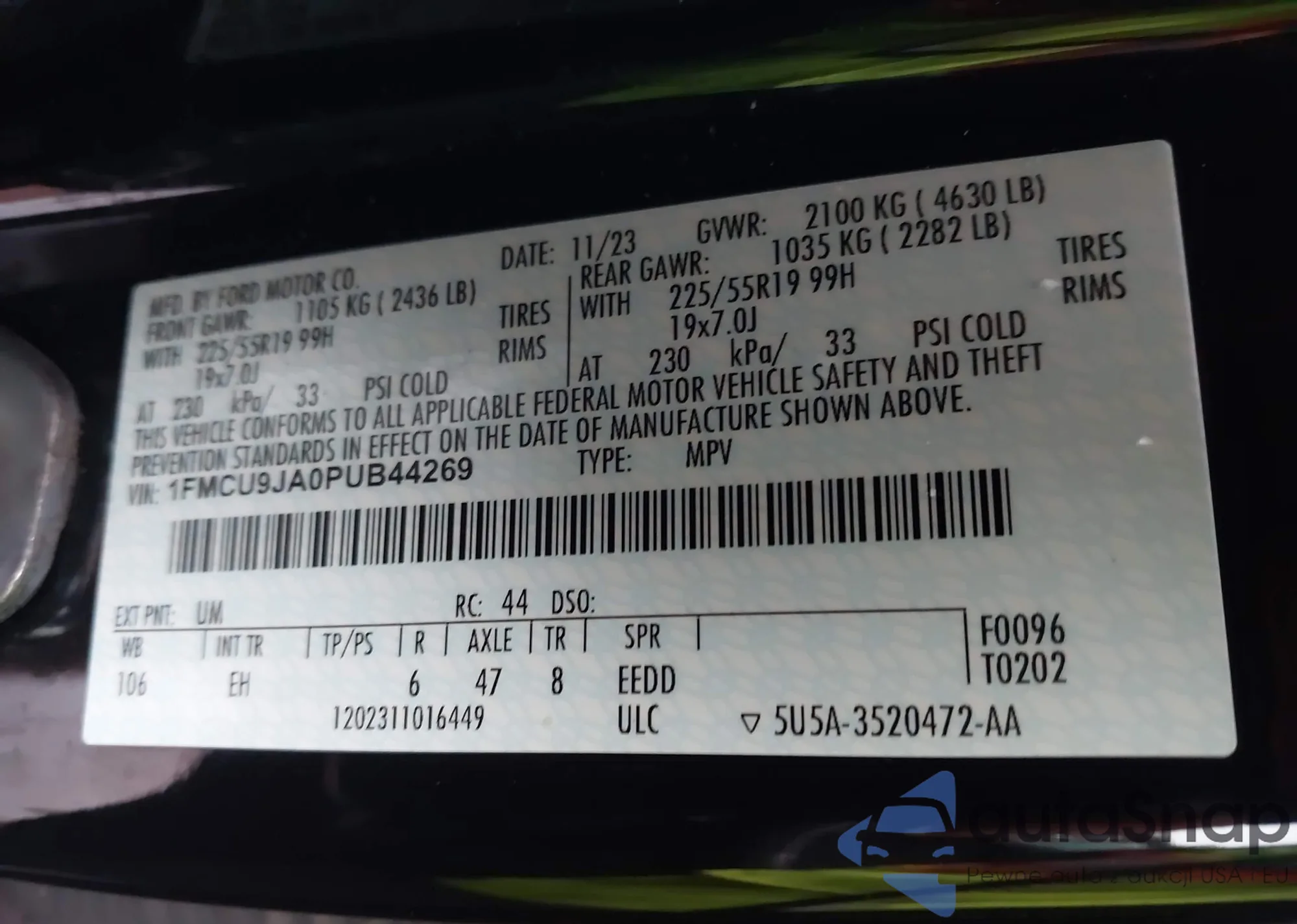 VIN: 1FMCU9JA0PUB44269