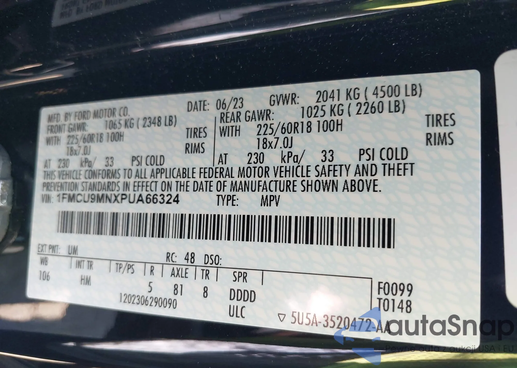 VIN: 1FMCU9MNXPUA66324