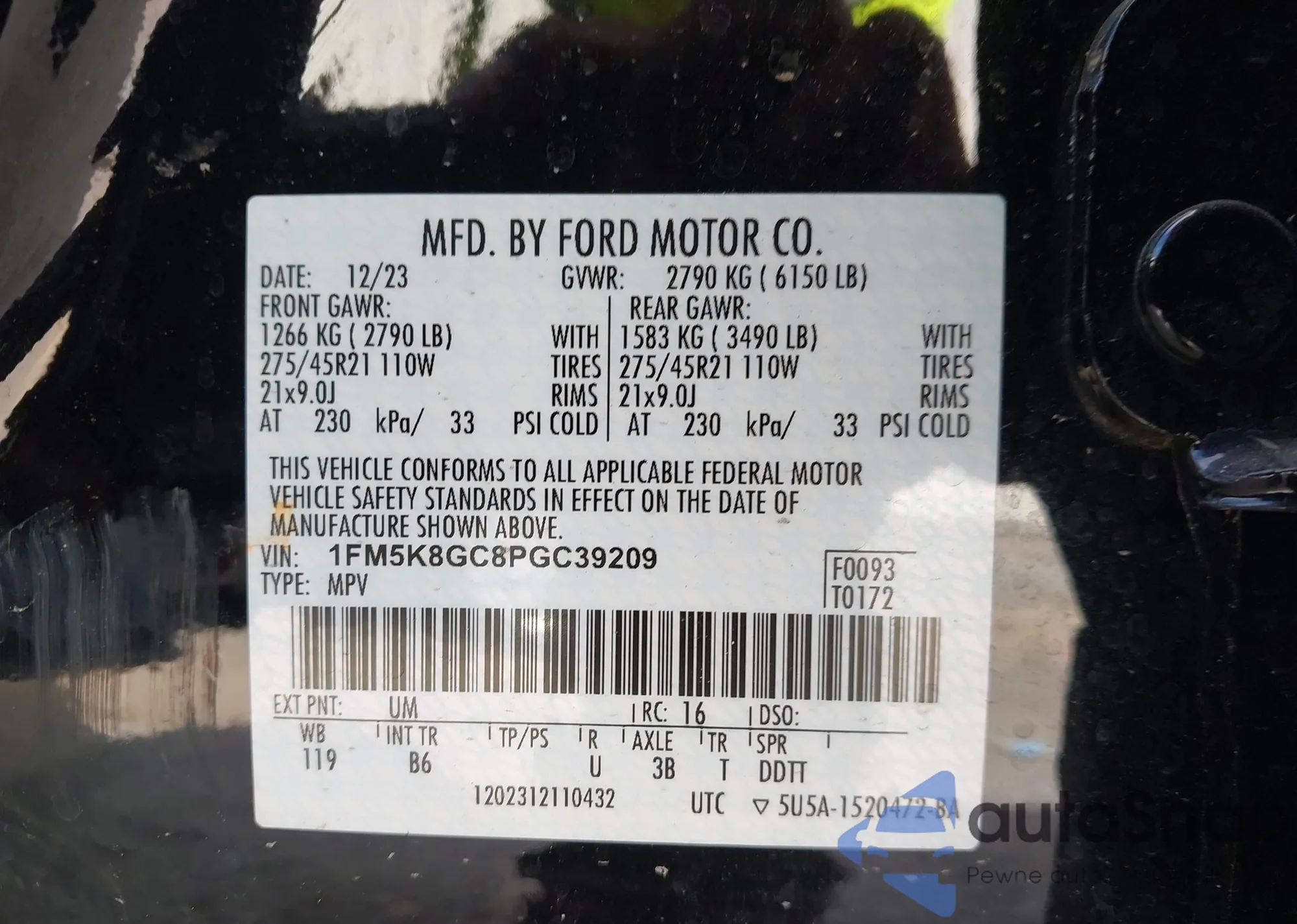 VIN: 1FM5K8GC8PGC39209