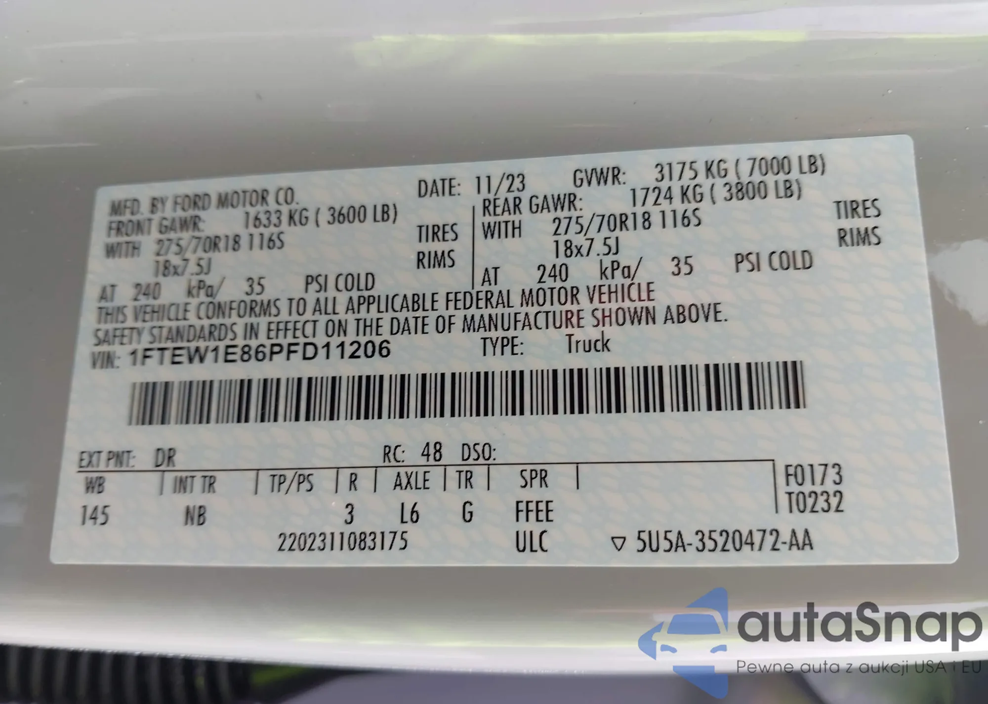 VIN: 1FTEW1E86PFD11206