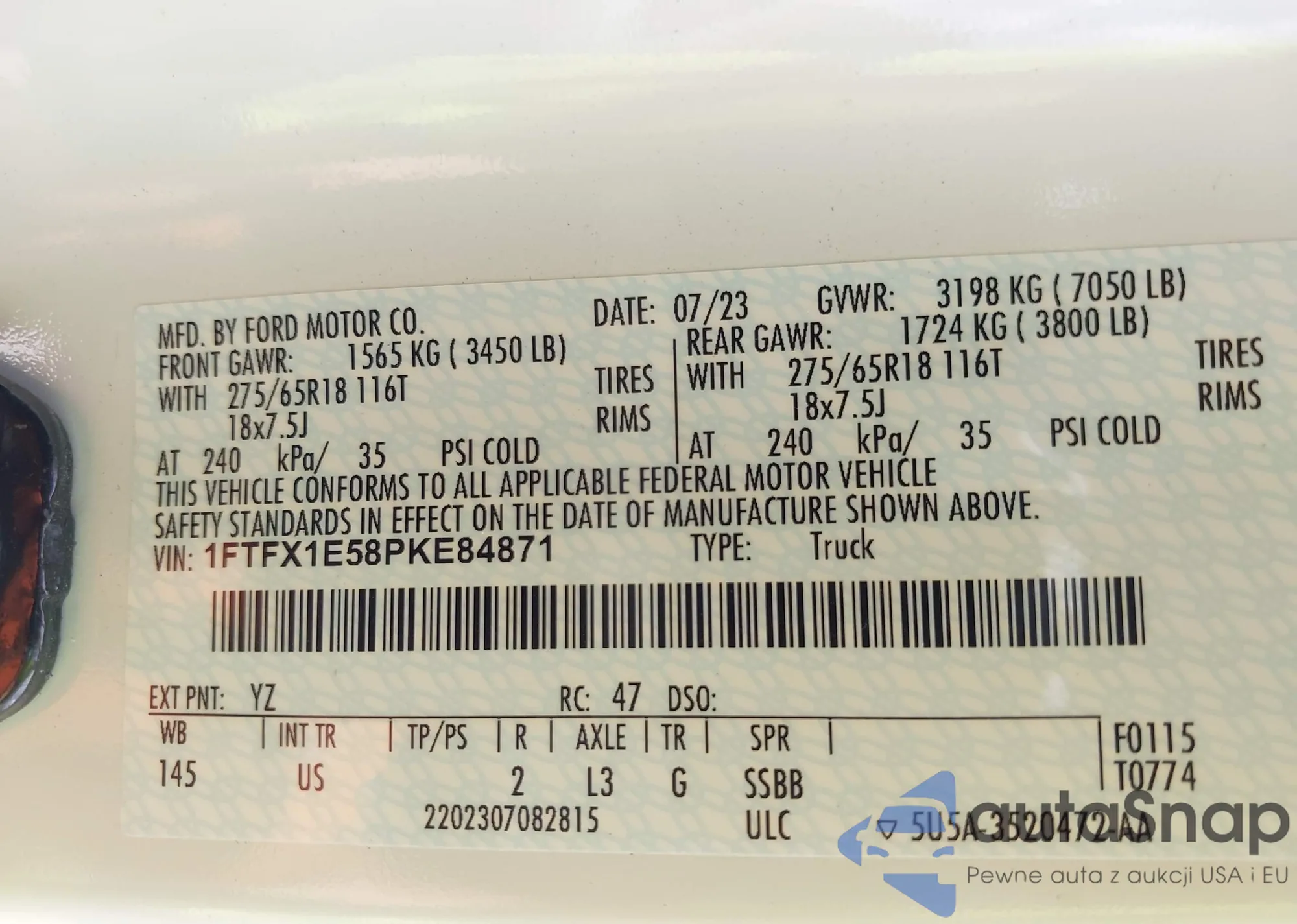 • VIN: 1FTFX1E58PKE84871