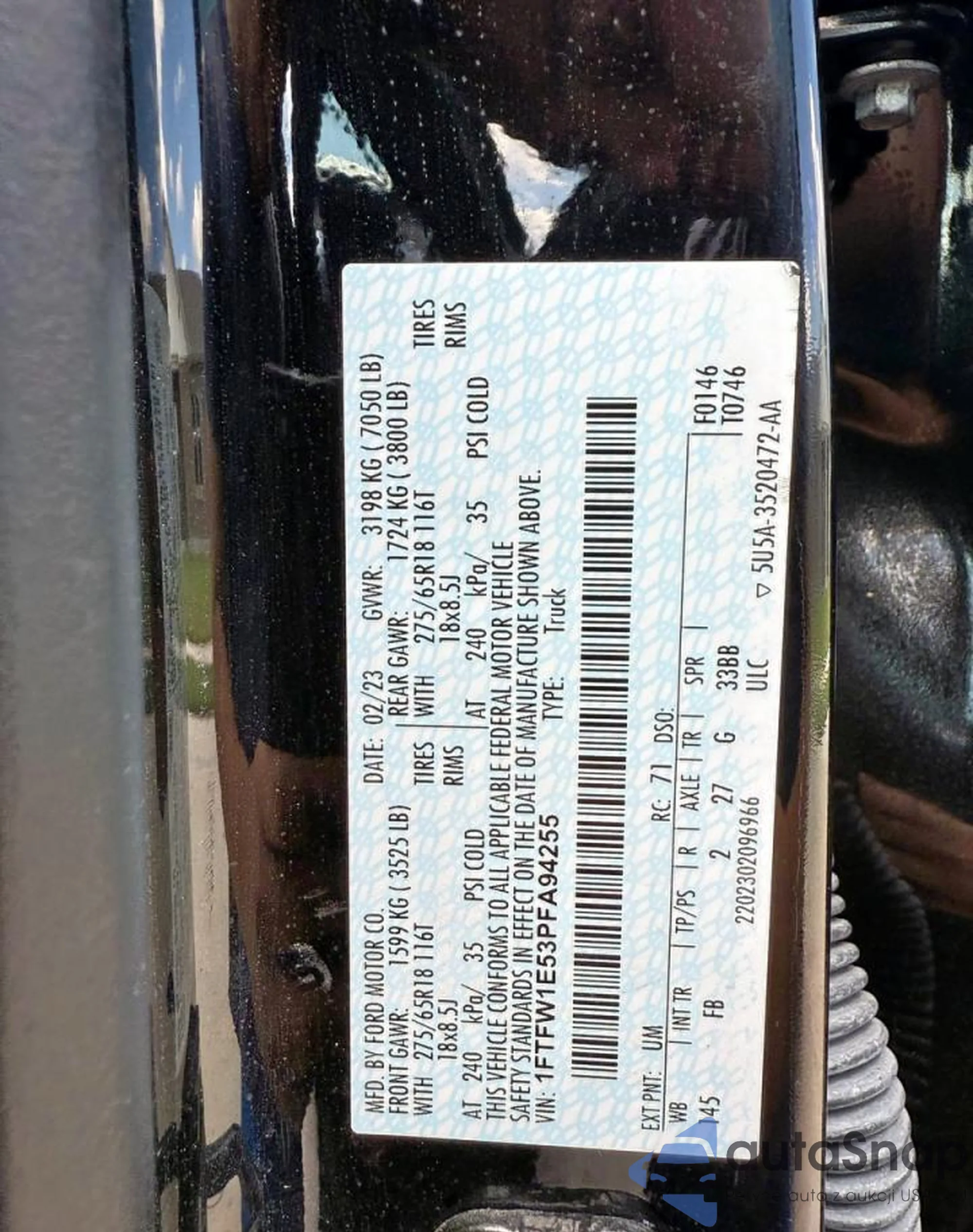 The car Ford F-150 2023 (VIN 1FTFW1E53PFA94255) has already been auctioned 2 times or is sold by an unverified seller. We recommend checking the Carfax report and confirming registration possibilities before purchase.