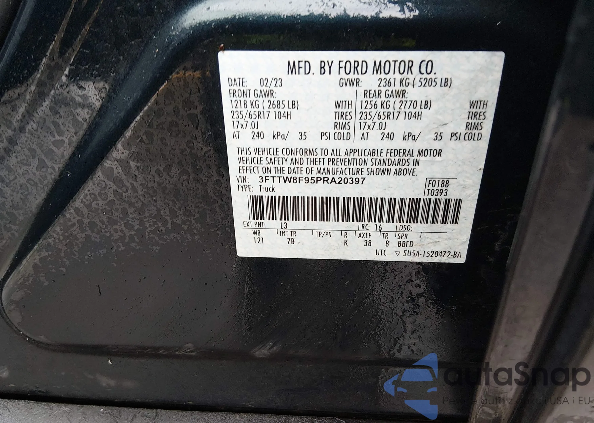 The car Ford Maverick 2023 (VIN 3FTTW8F95PRA20397) has not been auctioned before. The documents are clean, and the mileage matches or is below the market average. Sold by an insurance company – we recommend purchase. Delivery to the port will take approx. 6–8 weeks.