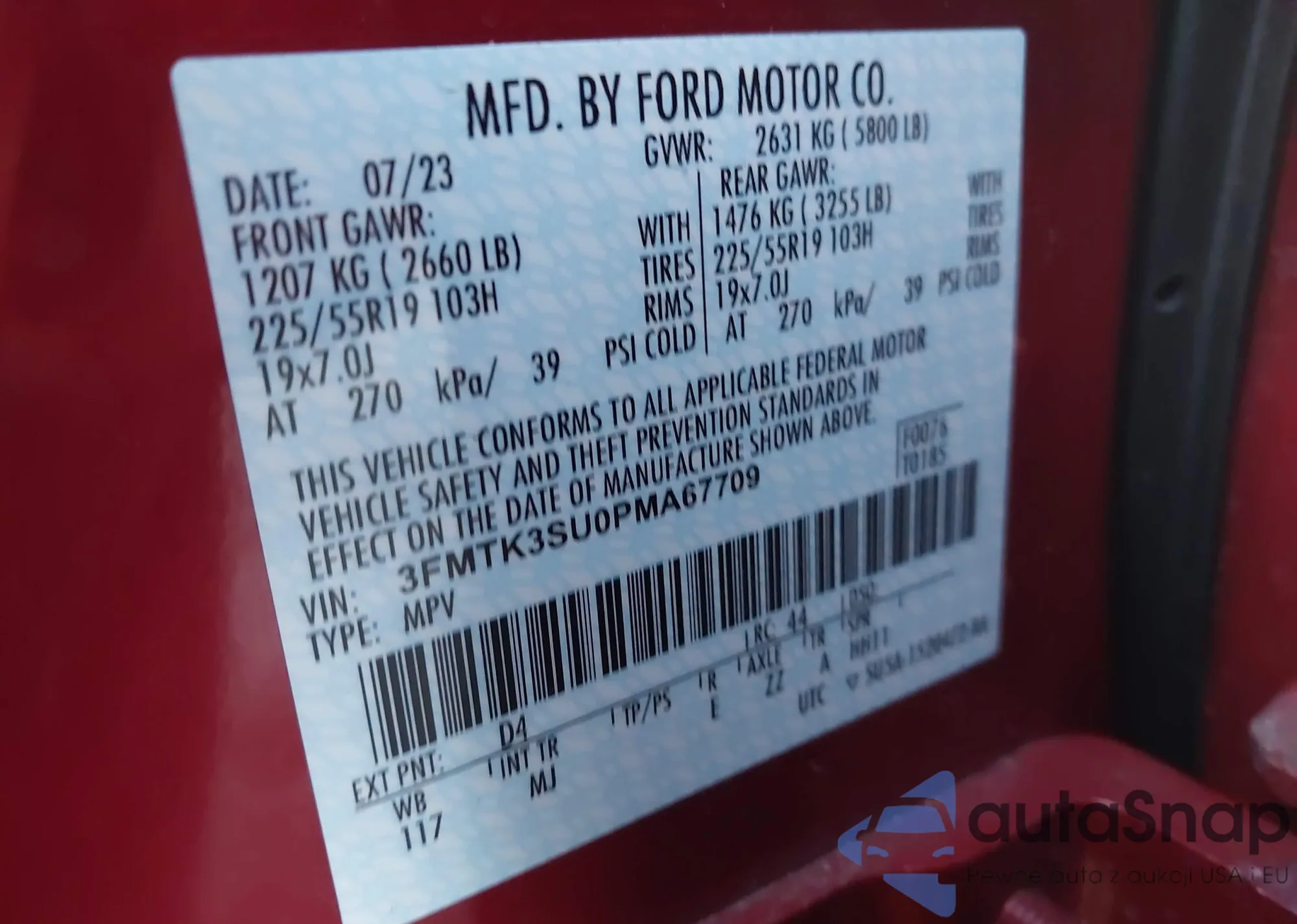 VIN: 3FMTK3SU0PMA67709