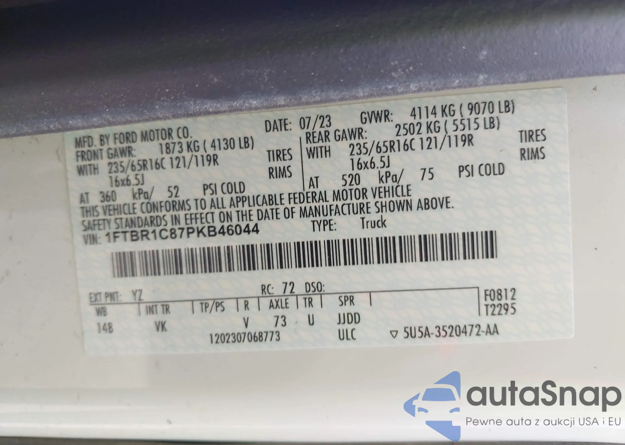 VIN: 1FTBR1C87PKB46044
