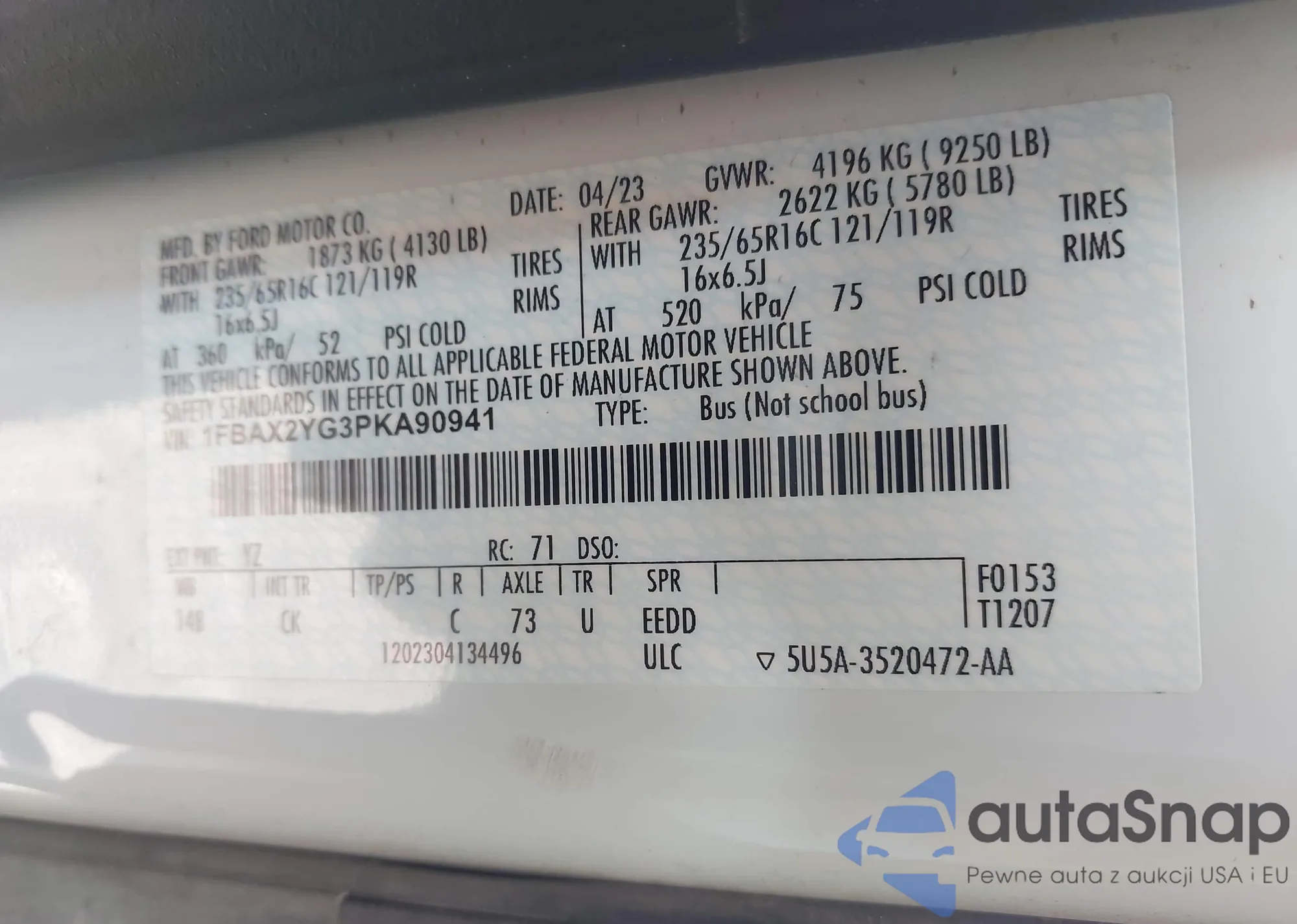 VIN: 1FBAX2YG3PKA90941