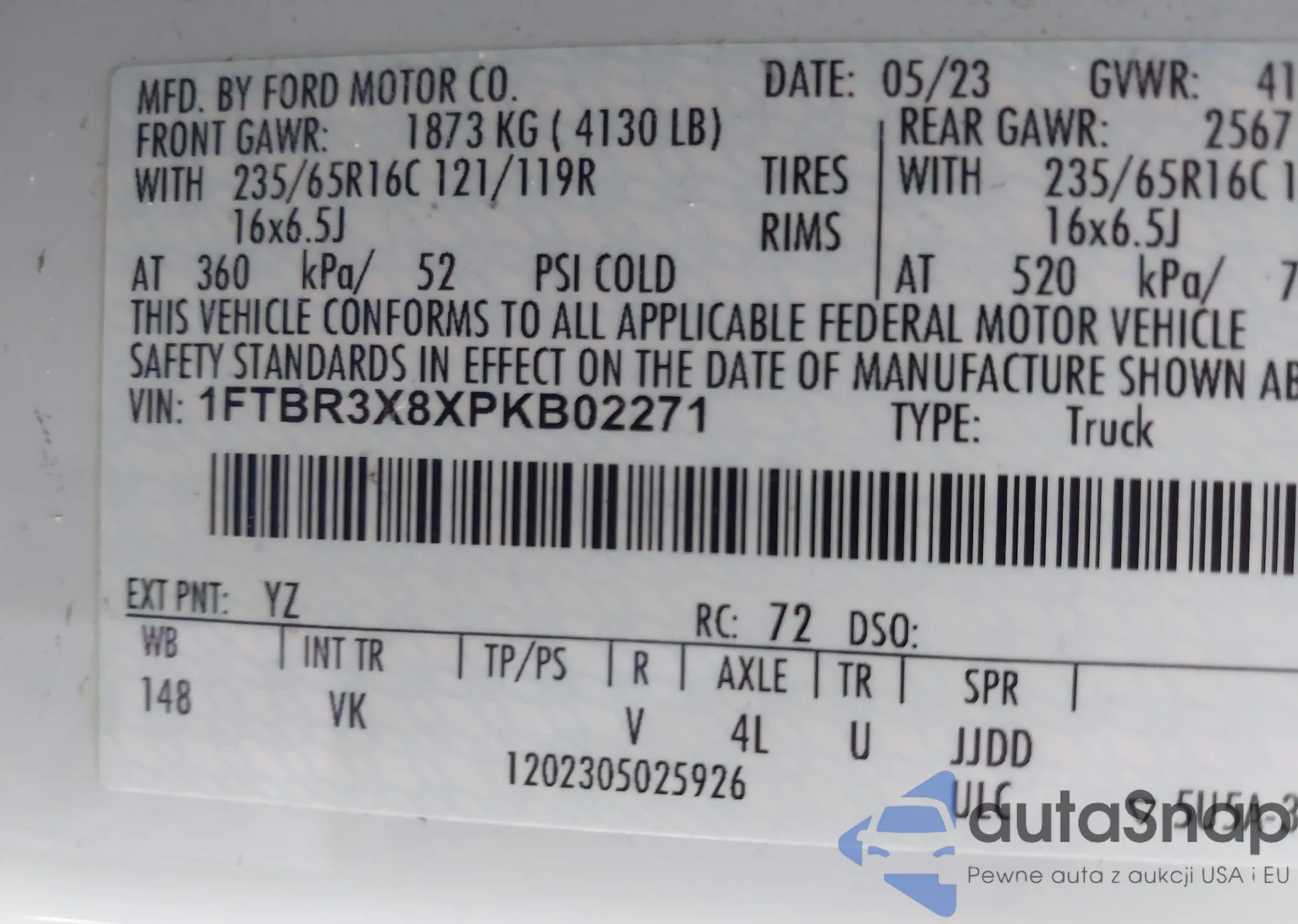 VIN: 1FTBR3X8XPKB02271