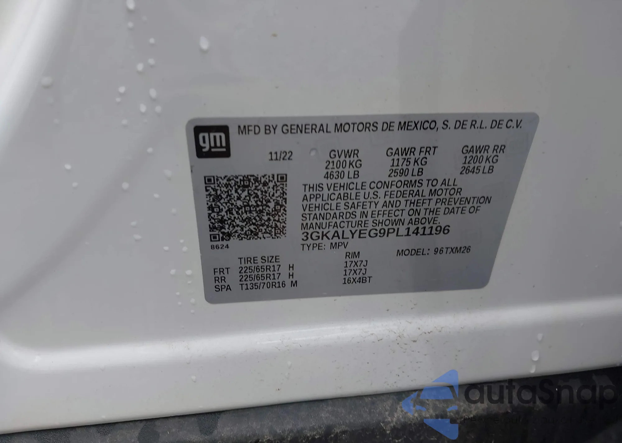 VIN: 3GKALYEG9PL141196