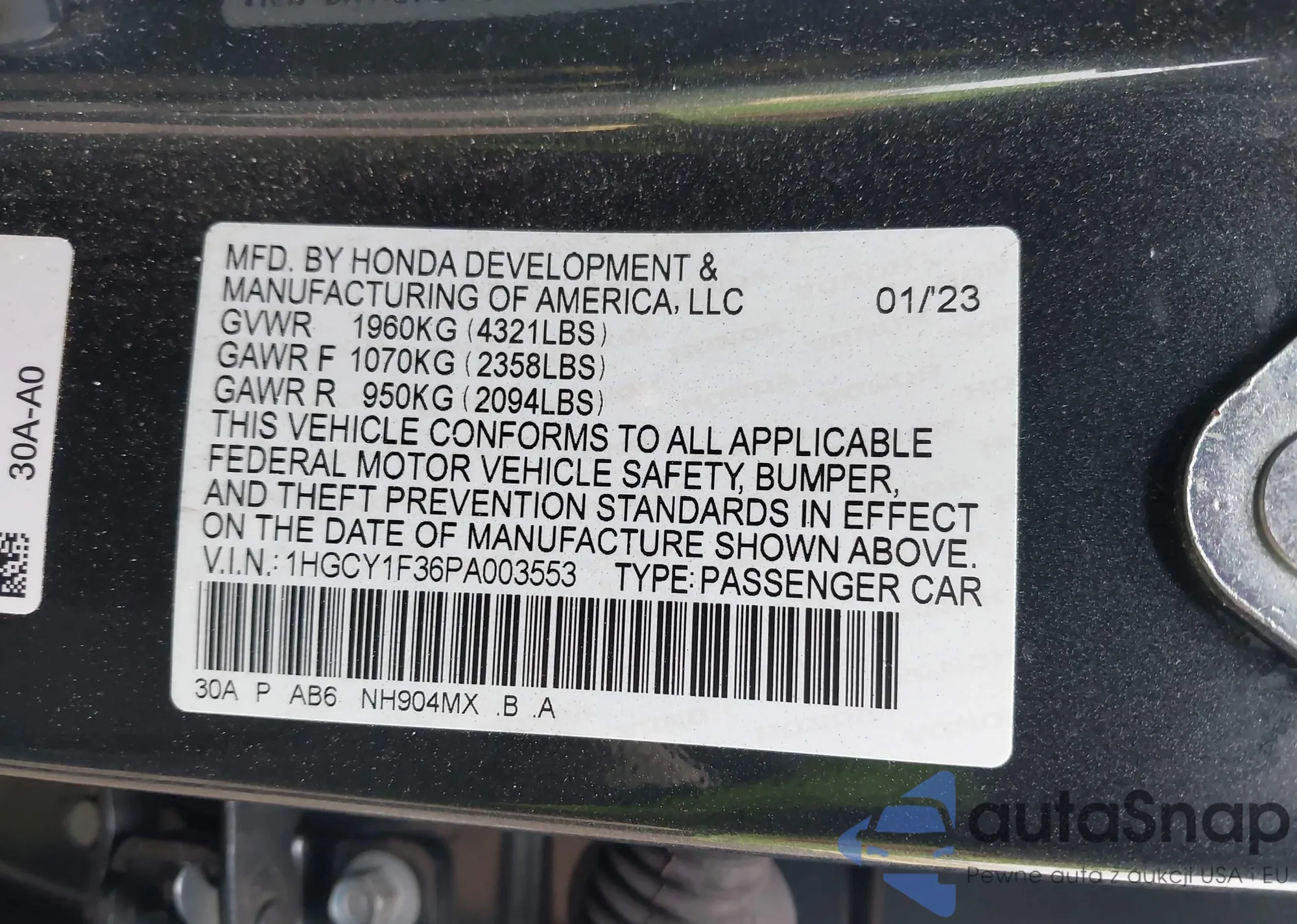 VIN: 1HGCY1F36PA003553