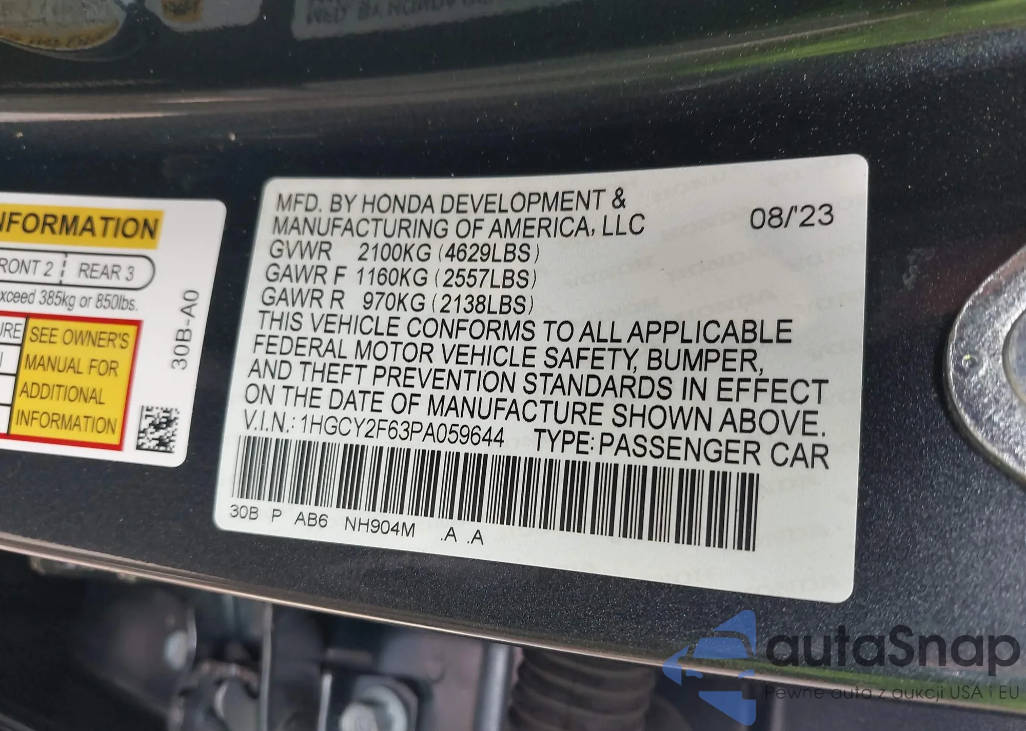 VIN: 1HGCY2F63PA059644