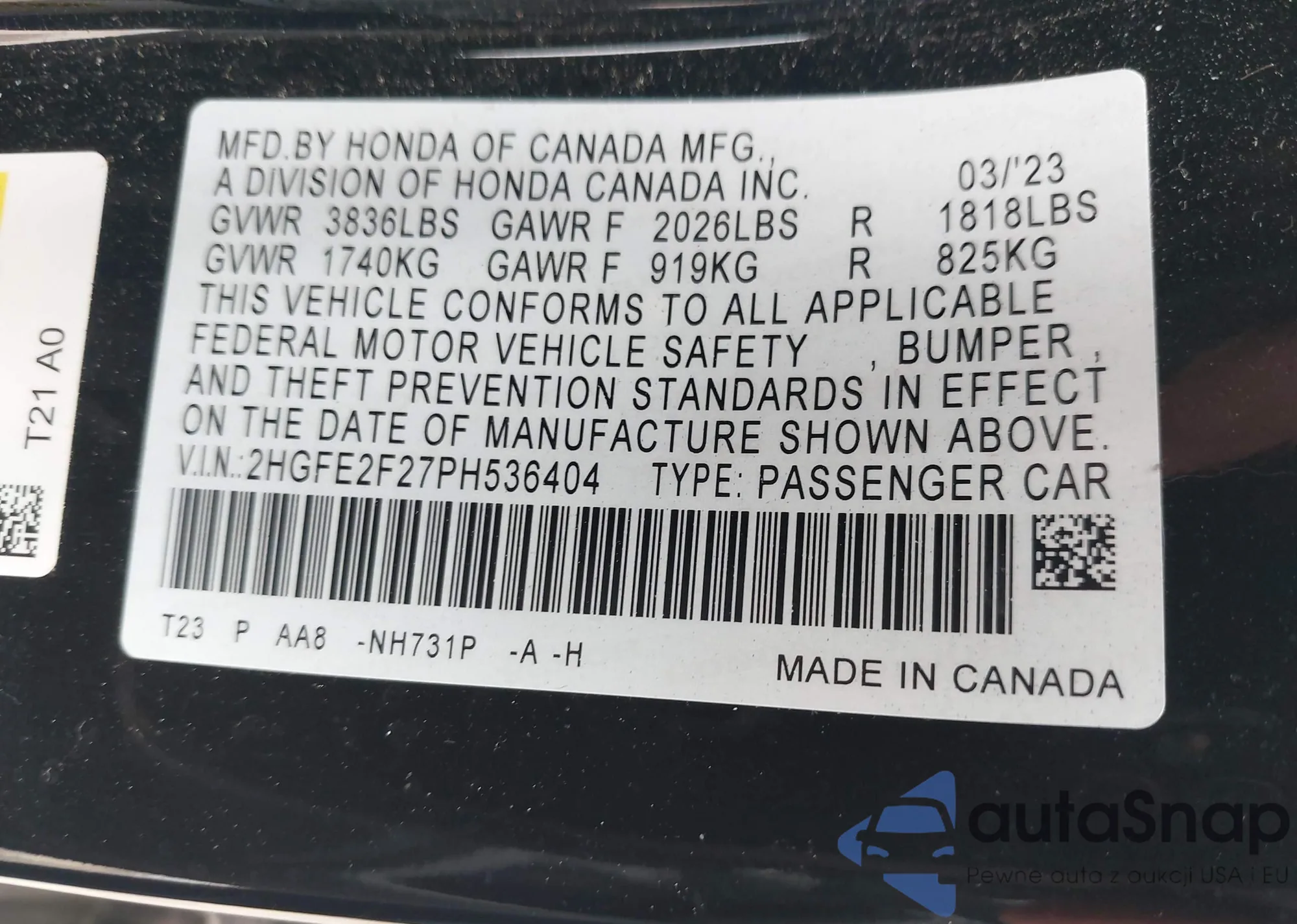 VIN: 2HGFE2F27PH536404