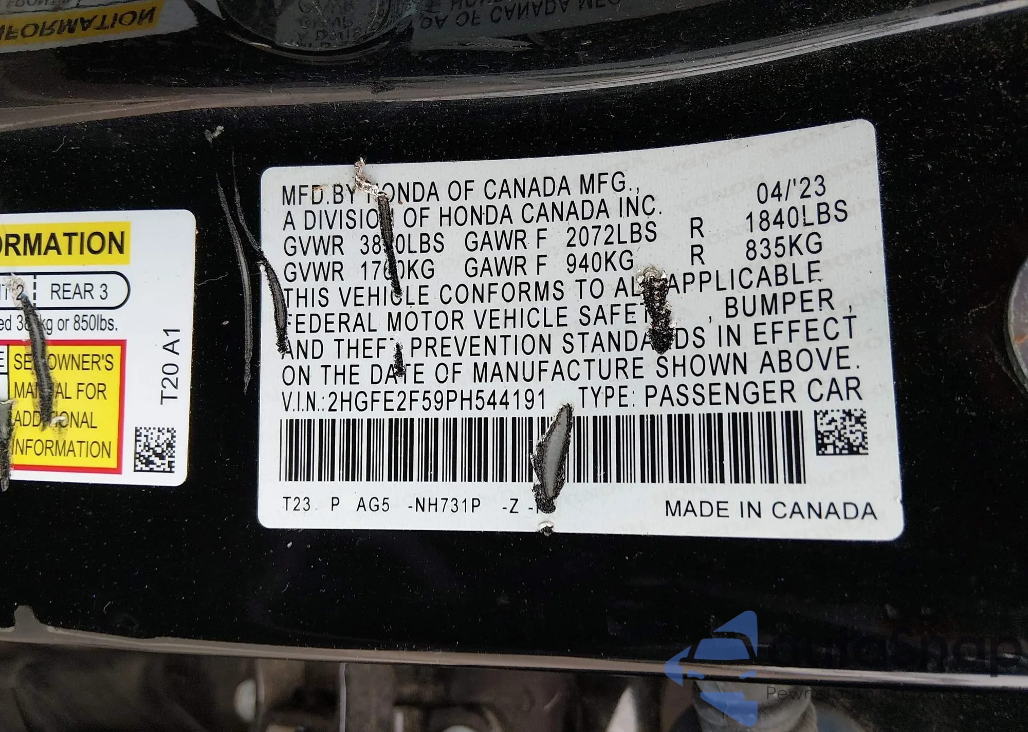 VIN: 2HGFE2F59PH544191