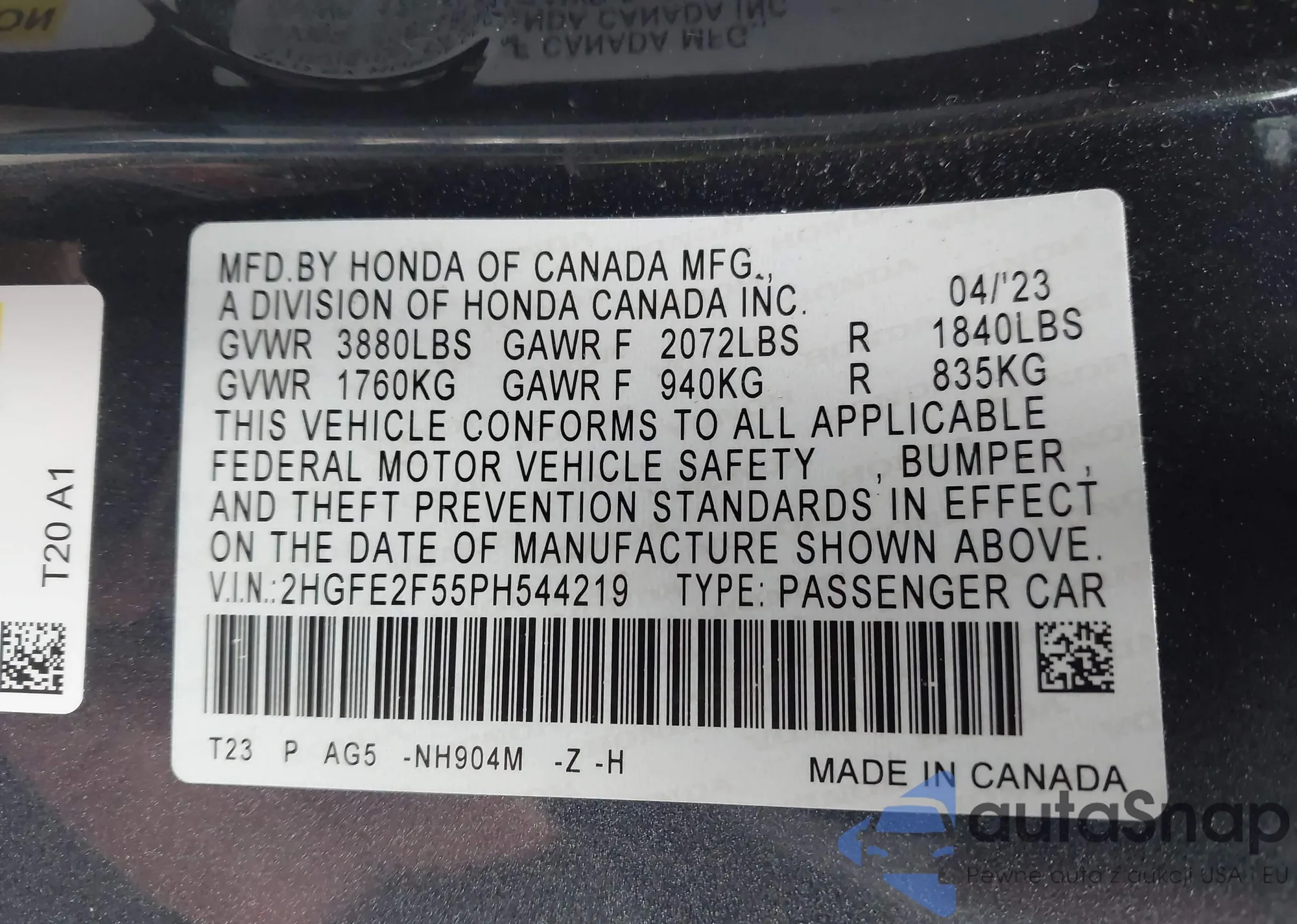 The car Honda Civic 2023 (VIN 2HGFE2F55PH544219) has not been auctioned before. The documents are clean, and the mileage matches or is below the market average. Sold by an insurance company – we recommend purchase. Delivery to the port will take approx. 6–8 weeks.