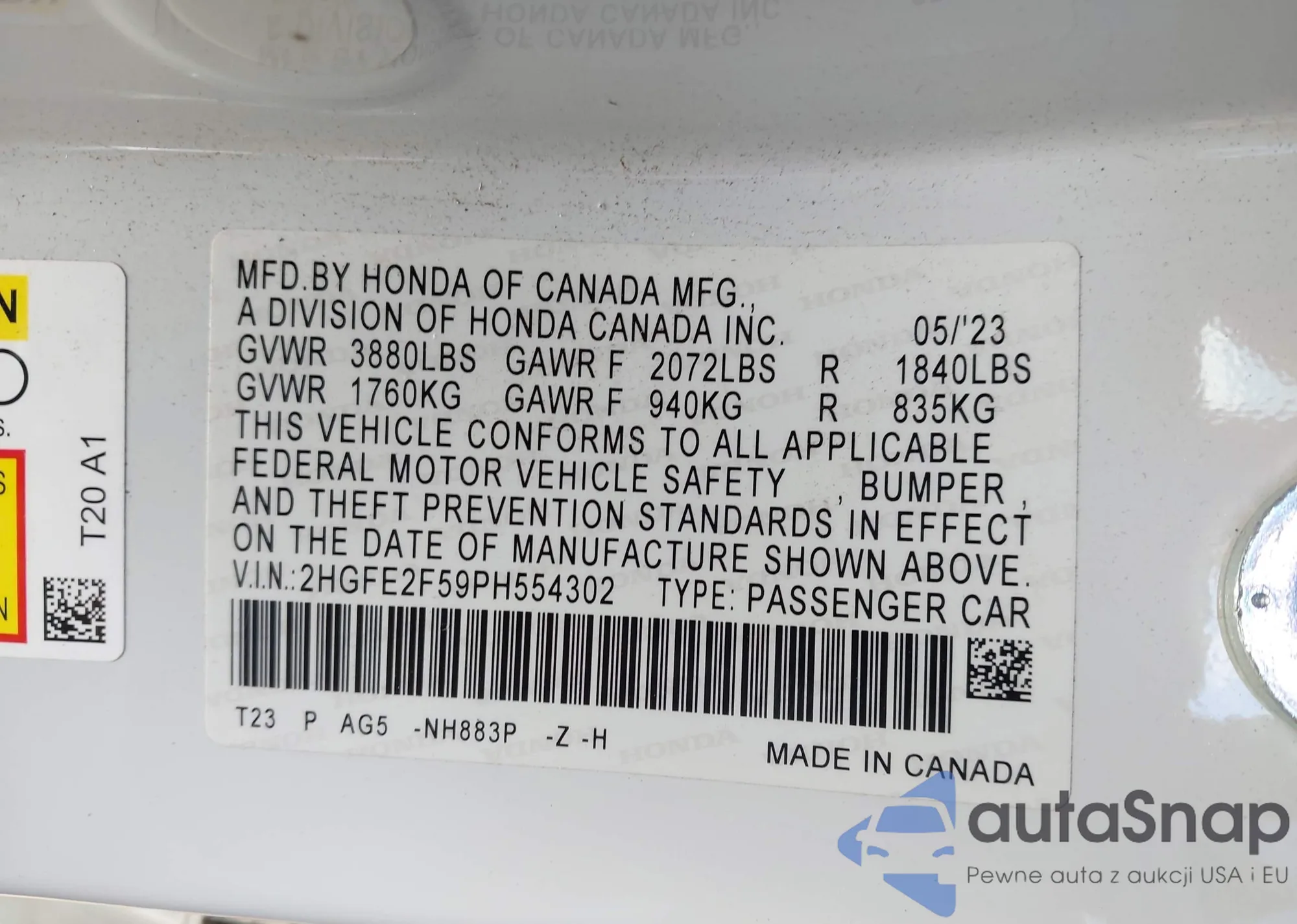 • VIN: 2HGFE2F59PH554302