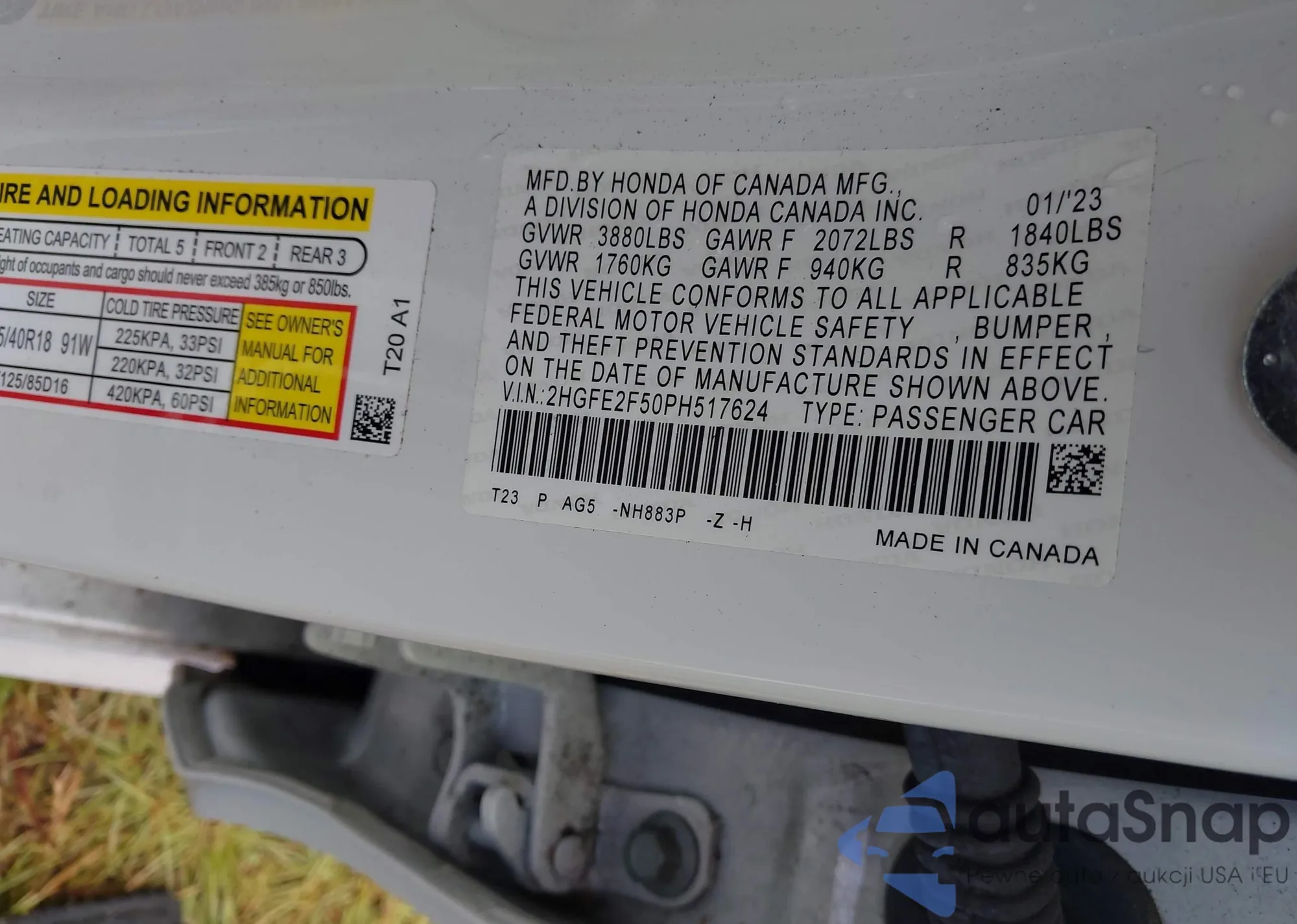 • VIN: 2HGFE2F50PH517624
