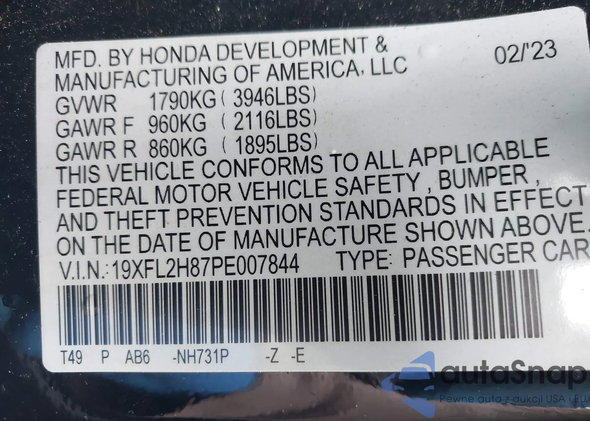 VIN: 19XFL2H87PE007844