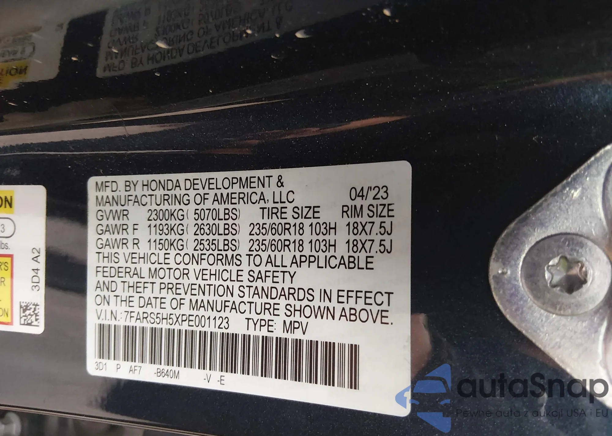 The car Honda CR-V 2023 (VIN 7FARS5H5XPE001123) has not been auctioned before. The documents are clean, and the mileage matches or is below the market average. Sold by an insurance company – we recommend purchase. Delivery to the port will take approx. 6–8 weeks.