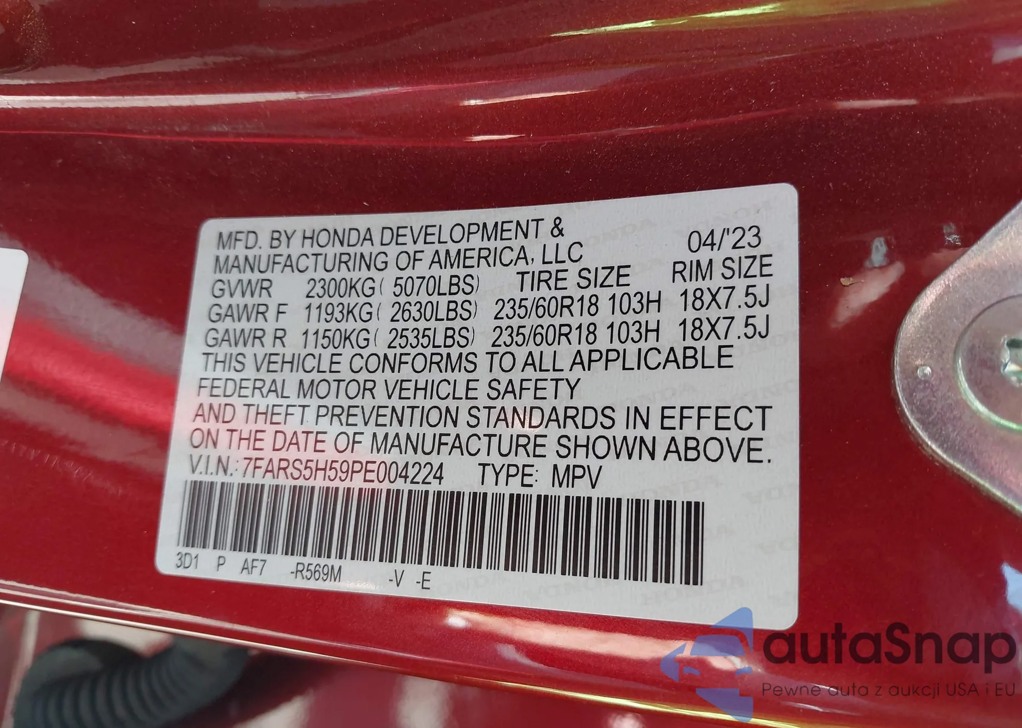 VIN: 7FARS5H59PE004224
