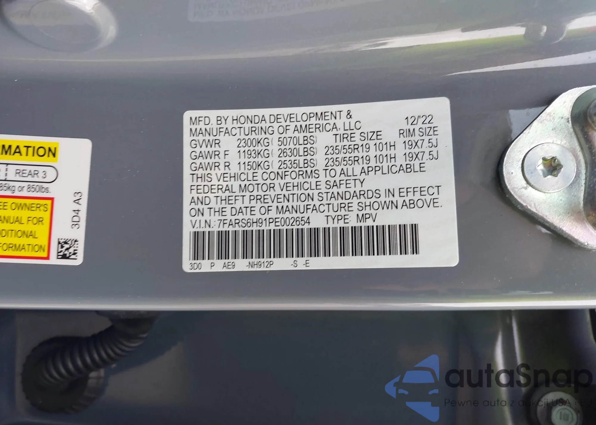 The car Honda CR-V 2023 (VIN 7FARS6H91PE002654) has not been auctioned before. The documents are clean, and the mileage matches or is below the market average. Sold by an insurance company – we recommend purchase. Delivery to the port will take approx. 6–8 weeks.