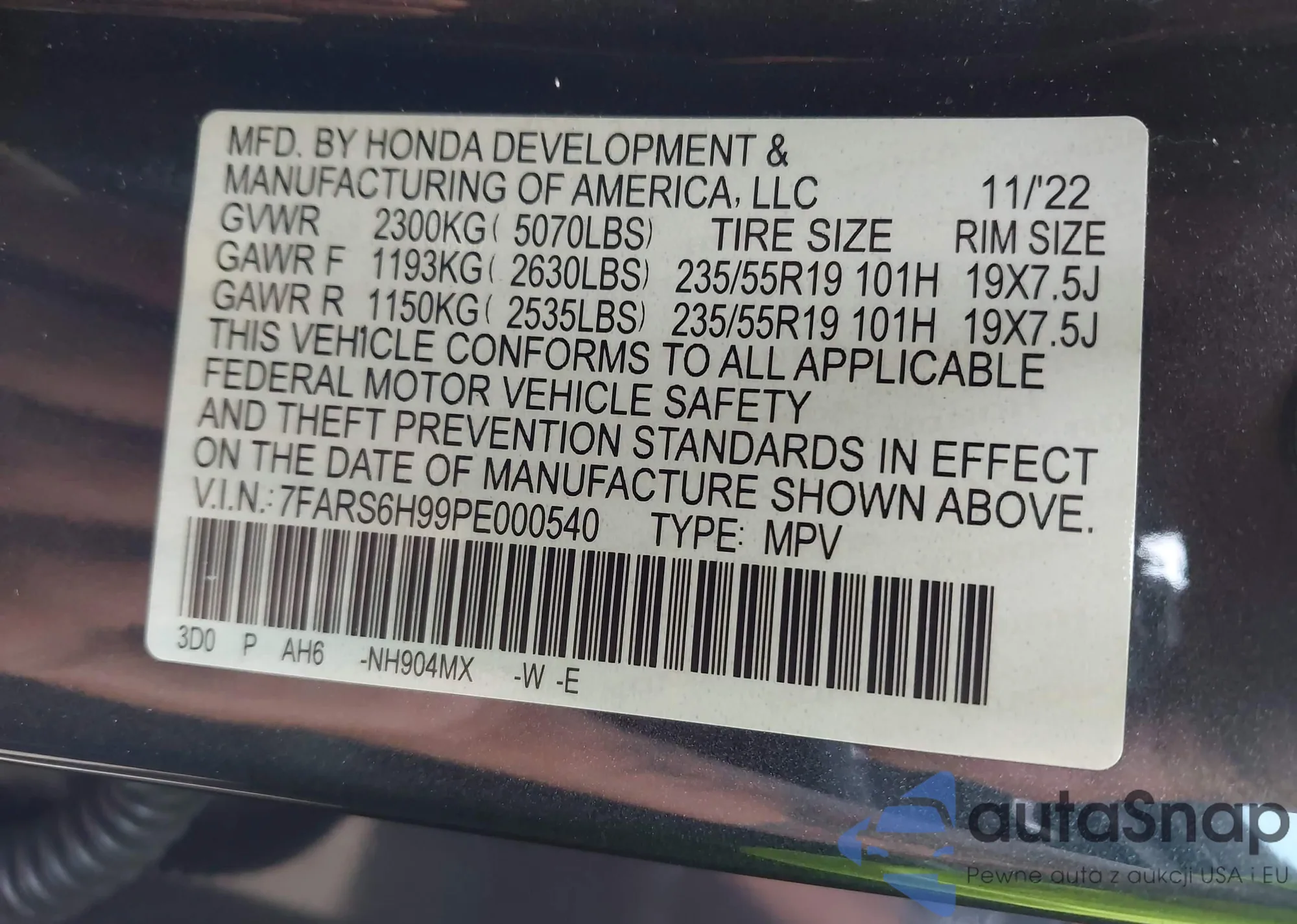 VIN: 7FARS6H99PE000540