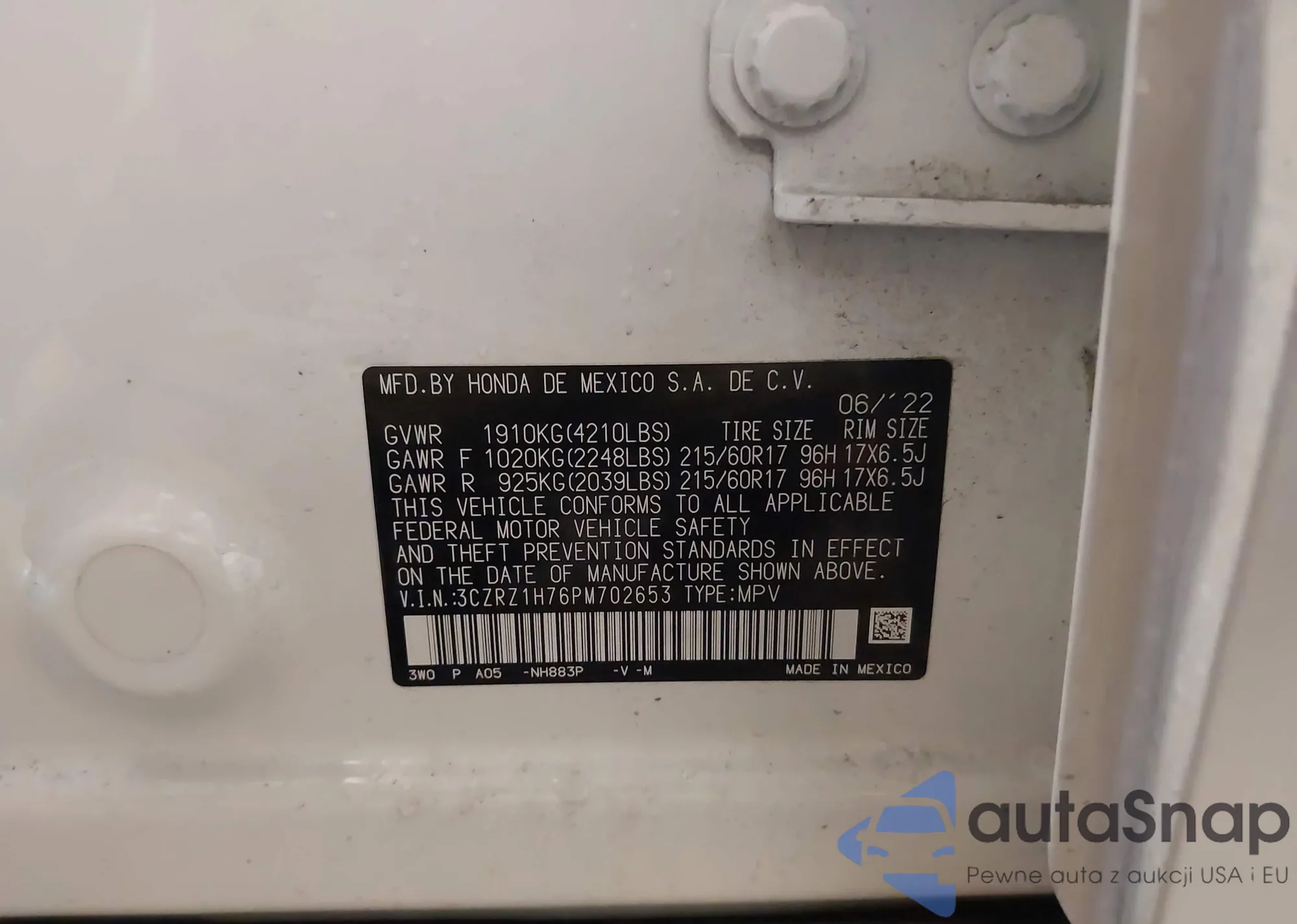 VIN: 3CZRZ1H76PM702653