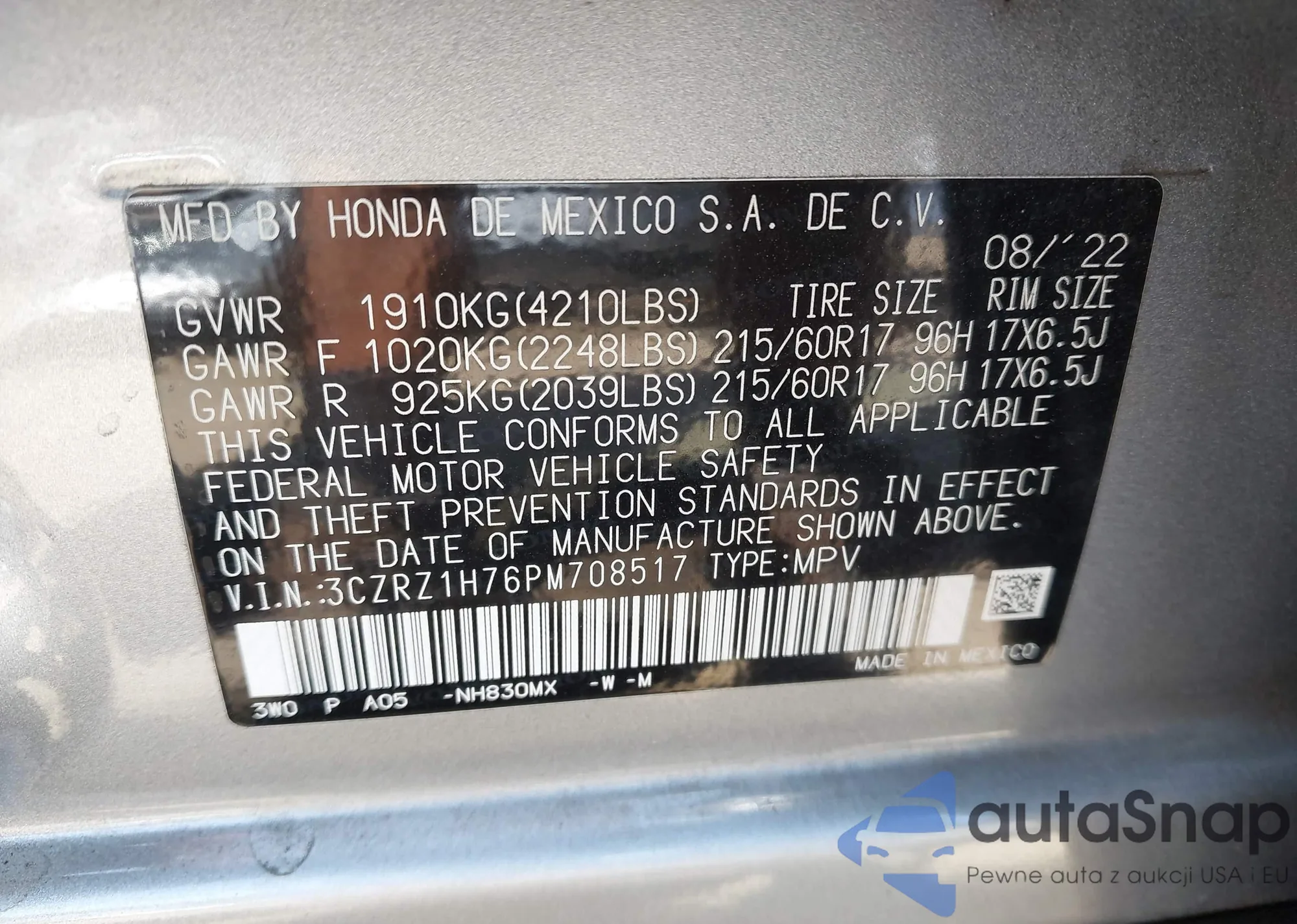 VIN: 3CZRZ1H76PM708517