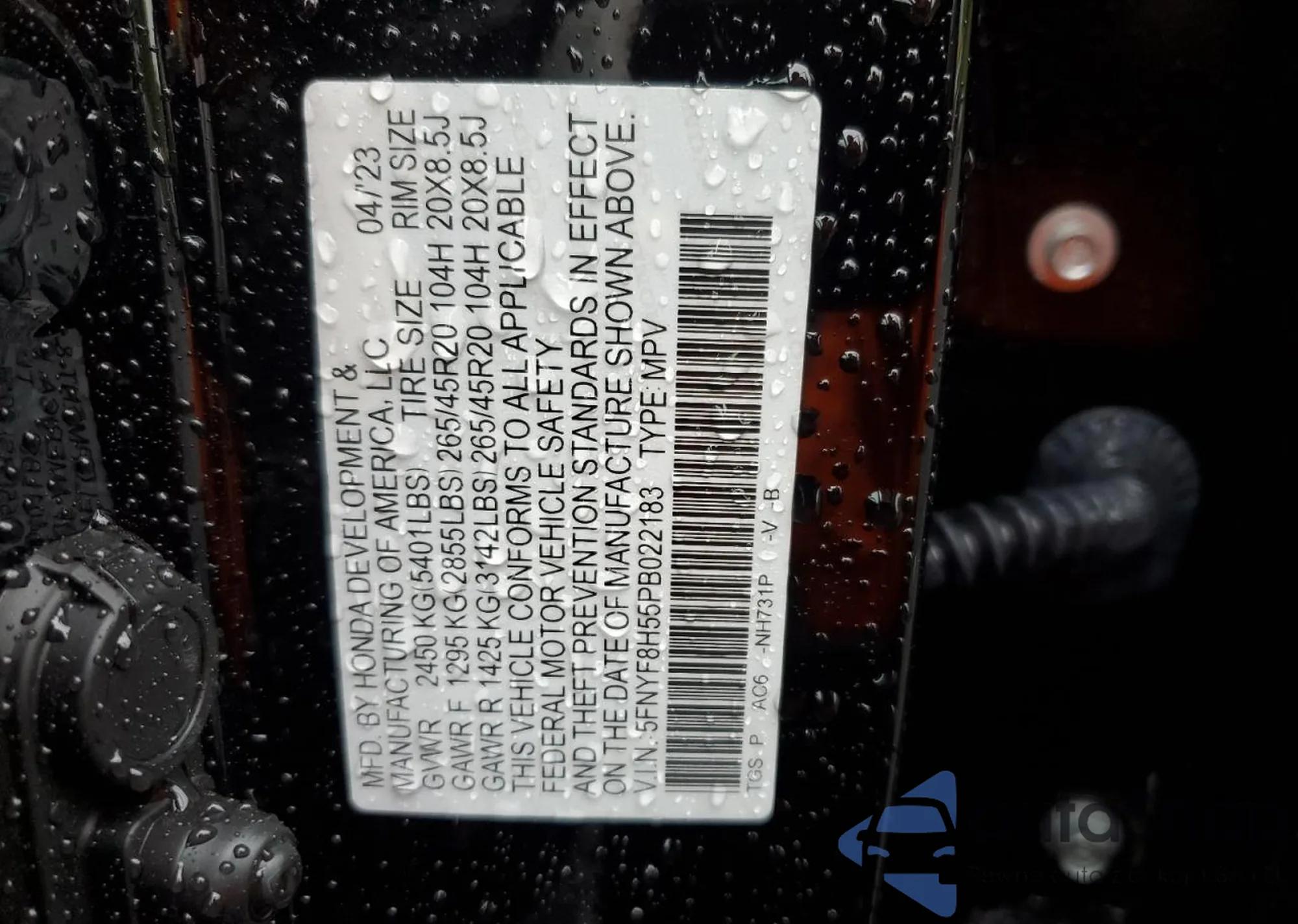 VIN: 5FNYF8H55PB022183