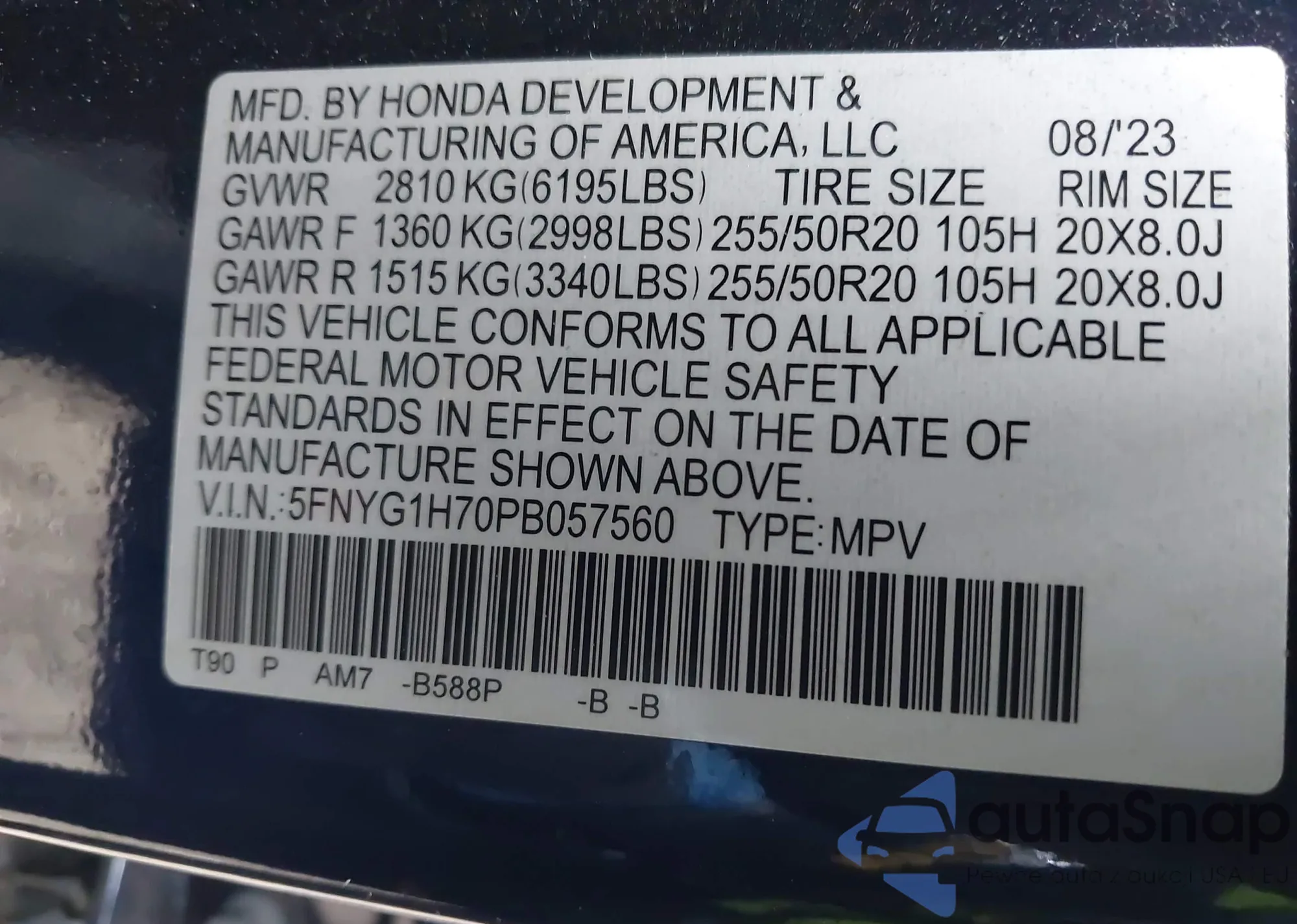 VIN: 5FNYG1H70PB057560