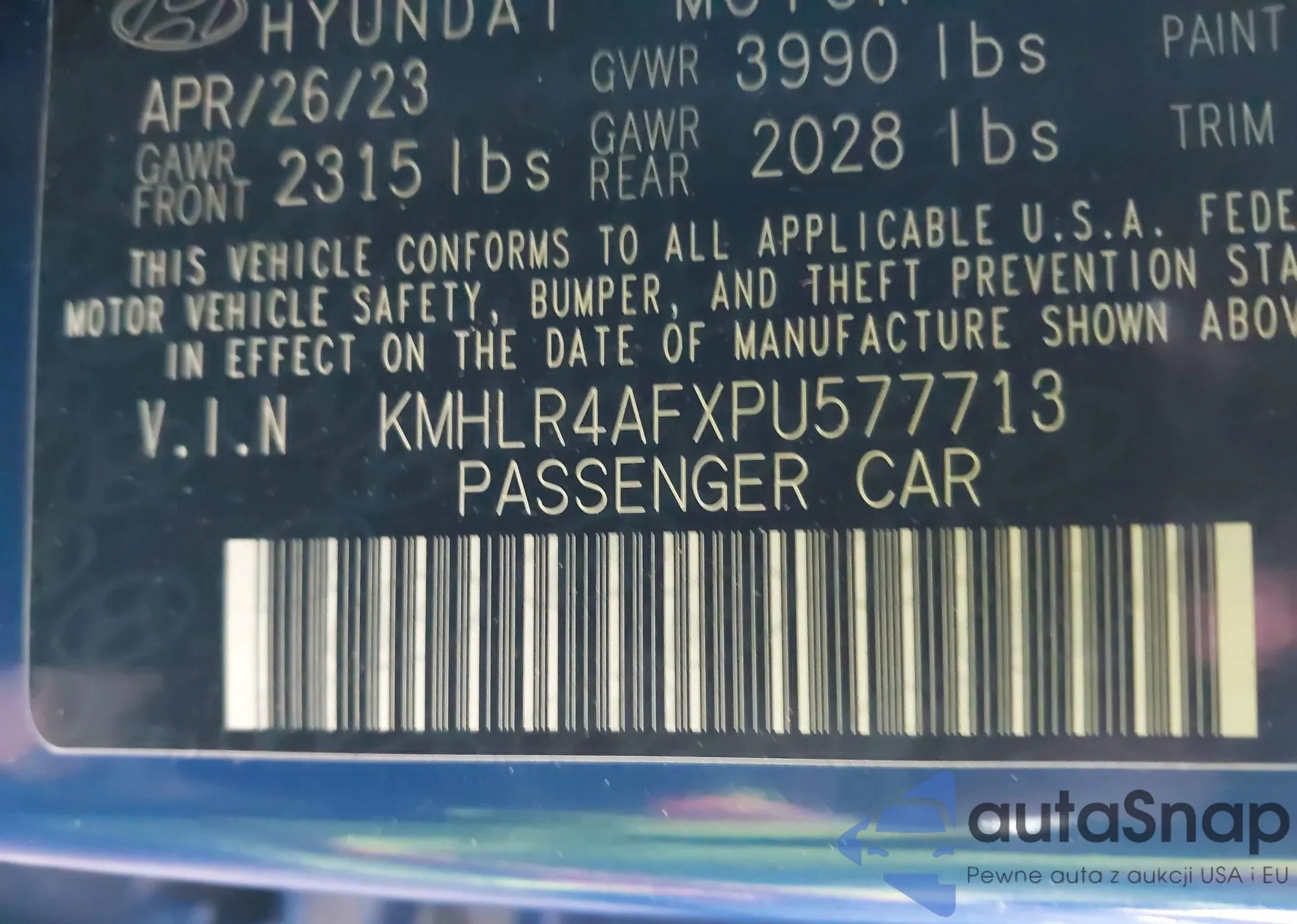VIN: KMHLR4AFXPU577713