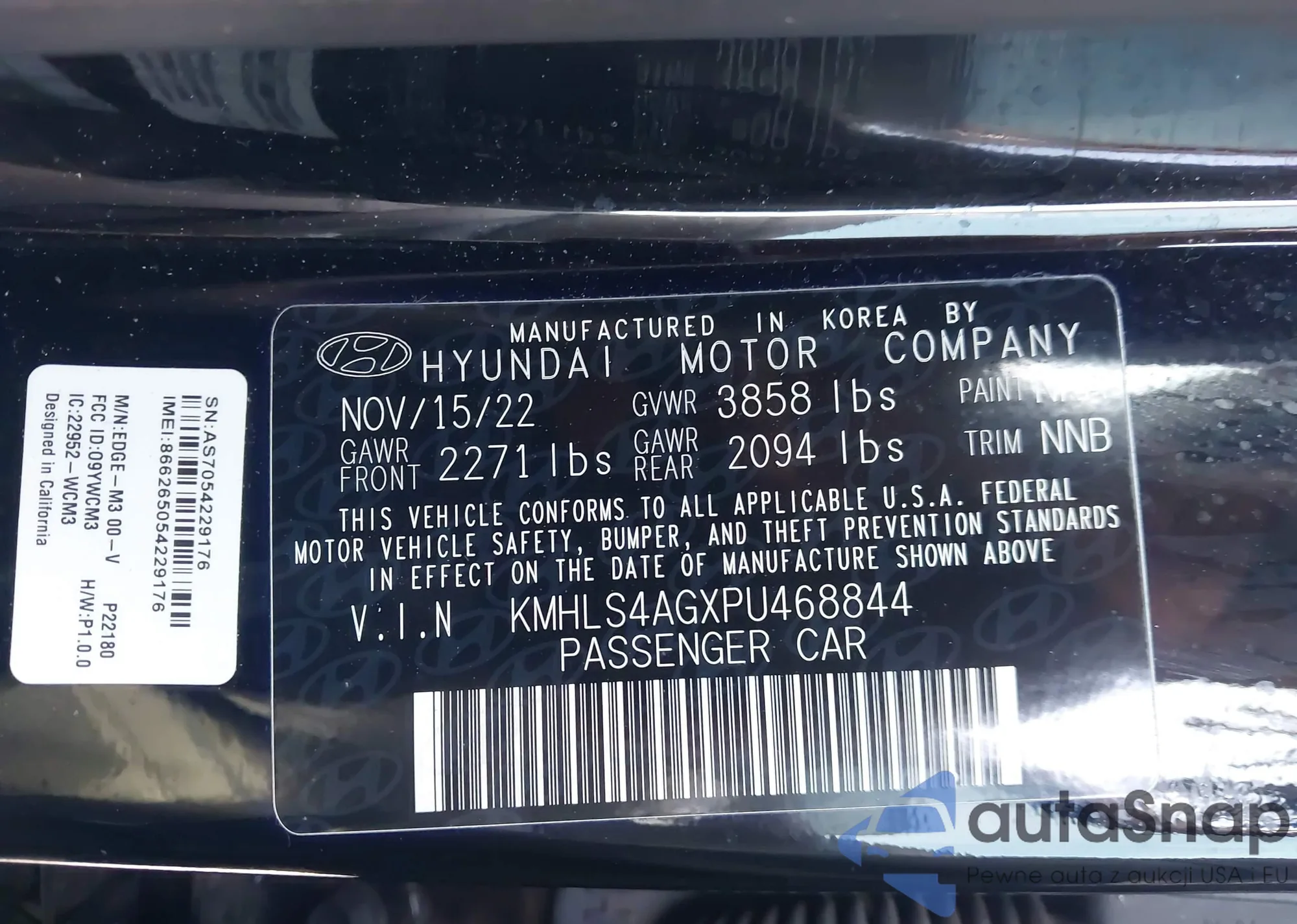 The car Hyundai Elantra 2023 (VIN KMHLS4AGXPU468844) has not been auctioned before. The documents are clean, and the mileage matches or is below the market average. Sold by an insurance company – we recommend purchase. Delivery to the port will take approx. 6–8 weeks.