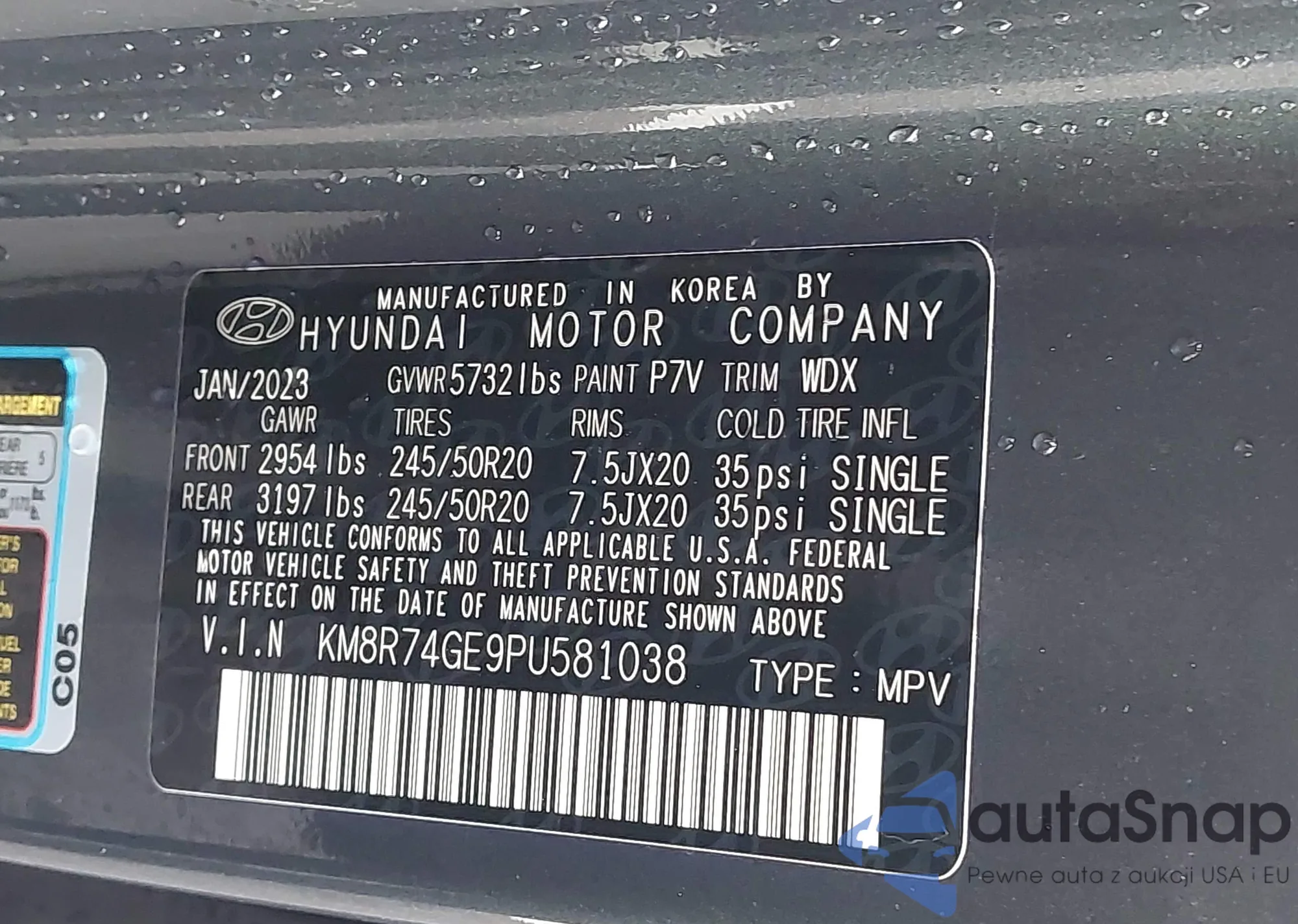 • VIN: KM8R74GE9PU581038