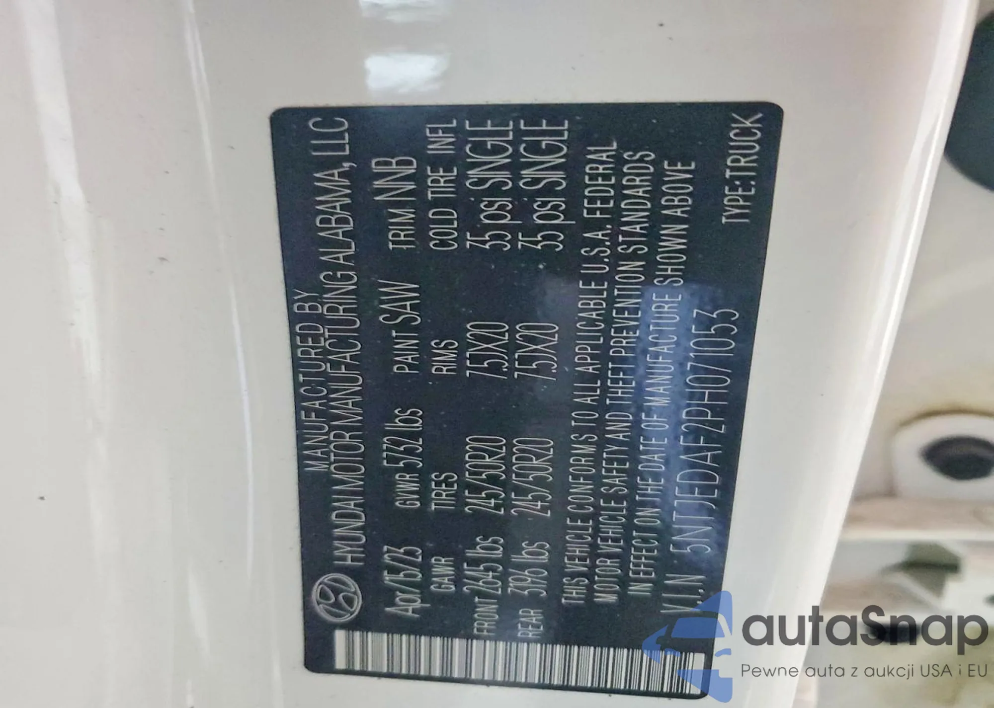 The car Hyundai Santa Cruz 2023 (VIN 5NTJEDAF2PH071053) is sold by an unverified seller. We recommend checking the Carfax report and confirming registration possibilities before purchase.