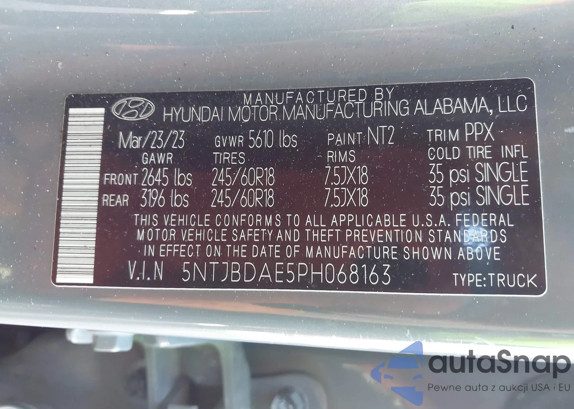 VIN: 5NTJBDAE5PH068163
