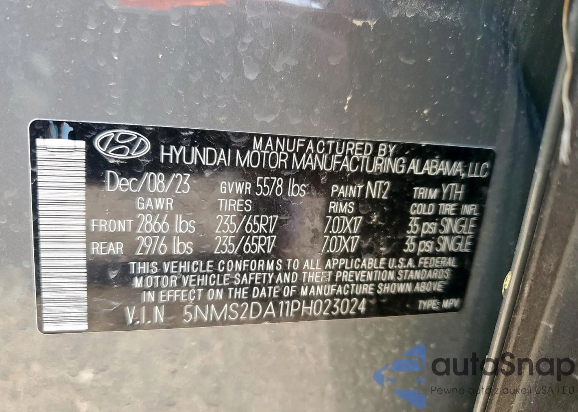 • VIN: 5NMS2DA11PH023024