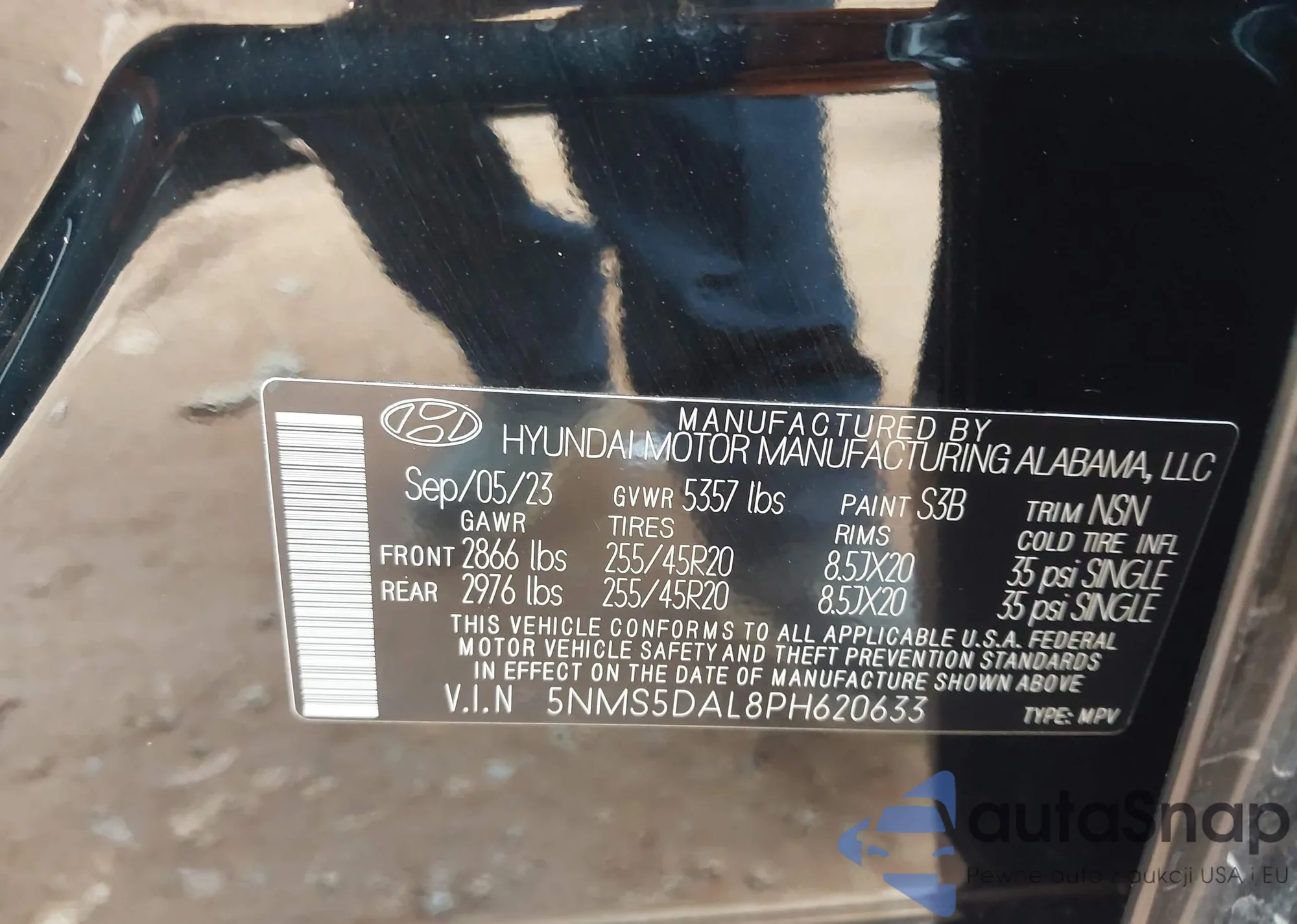 The car Hyundai Santa Fe 2023 (VIN 5NMS5DAL8PH620633) has not been auctioned before. The documents are clean, and the mileage matches or is below the market average. Sold by an insurance company – we recommend purchase. Delivery to the port will take approx. 6–8 weeks.