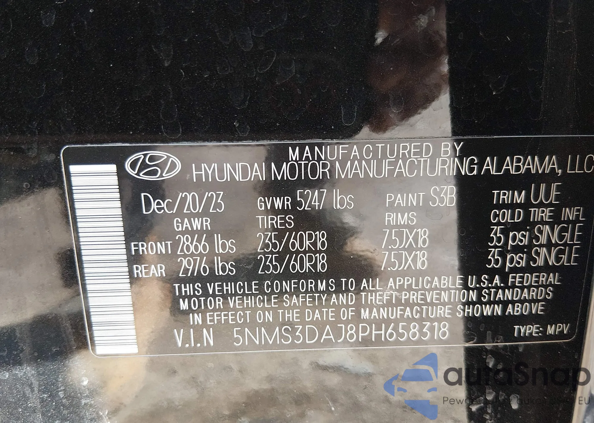The car Hyundai Santa Fe 2023 (VIN 5NMS3DAJ8PH658318) has not been auctioned before. The documents are clean, and the mileage matches or is below the market average. Sold by an insurance company – we recommend purchase. Delivery to the port will take approx. 6–8 weeks.