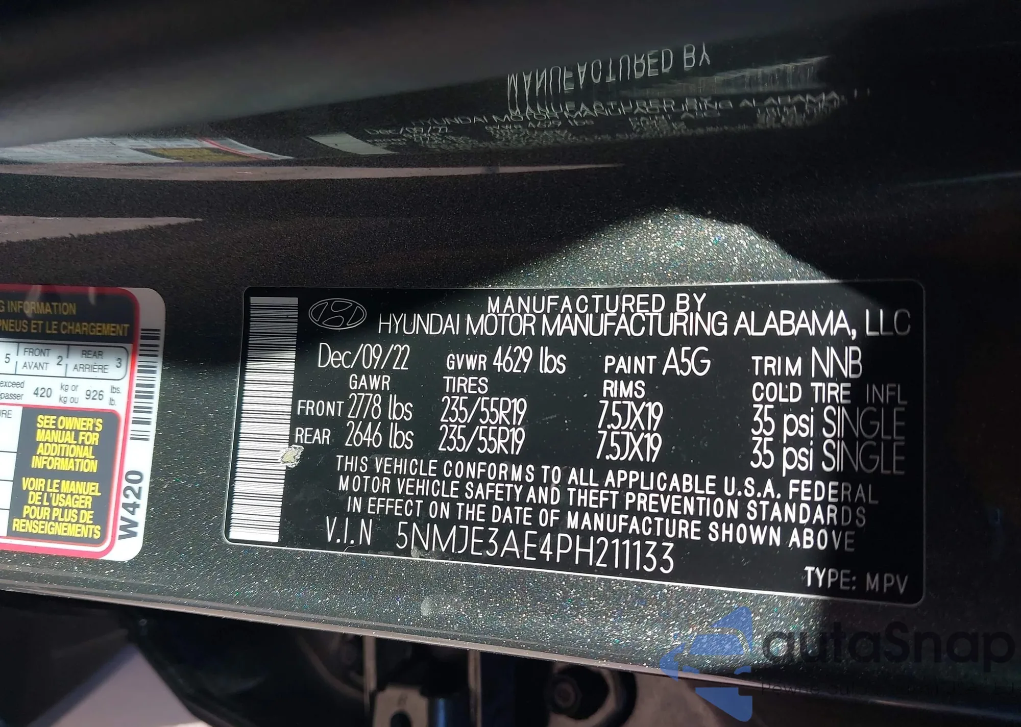 VIN: 5NMJE3AE4PH211133