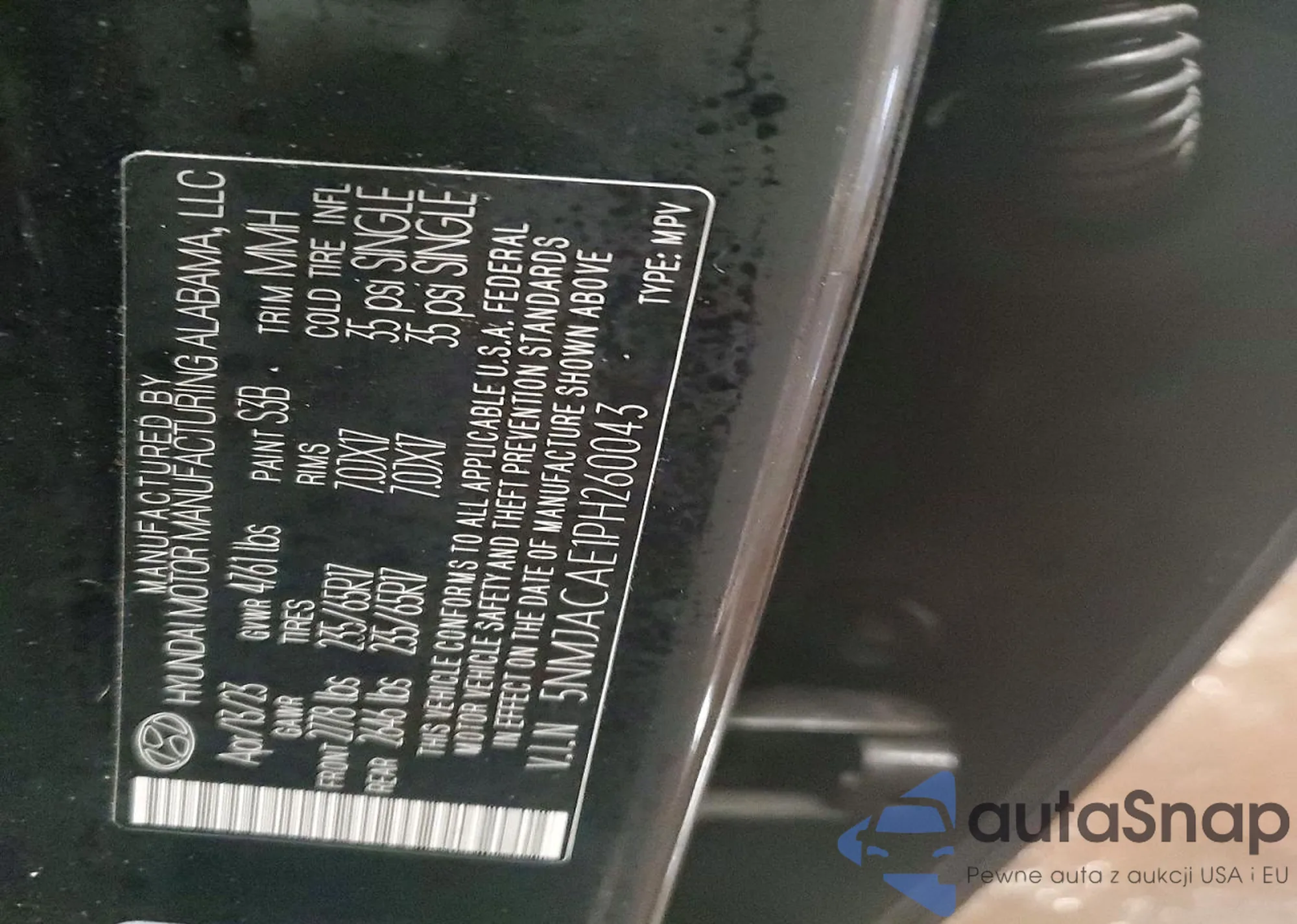 The car Hyundai Tucson 2023 (VIN 5NMJACAE1PH260043) has not been auctioned before. The documents are clean, and the mileage matches or is below the market average. Sold by an insurance company – we recommend purchase. Delivery to the port will take approx. 6–8 weeks.