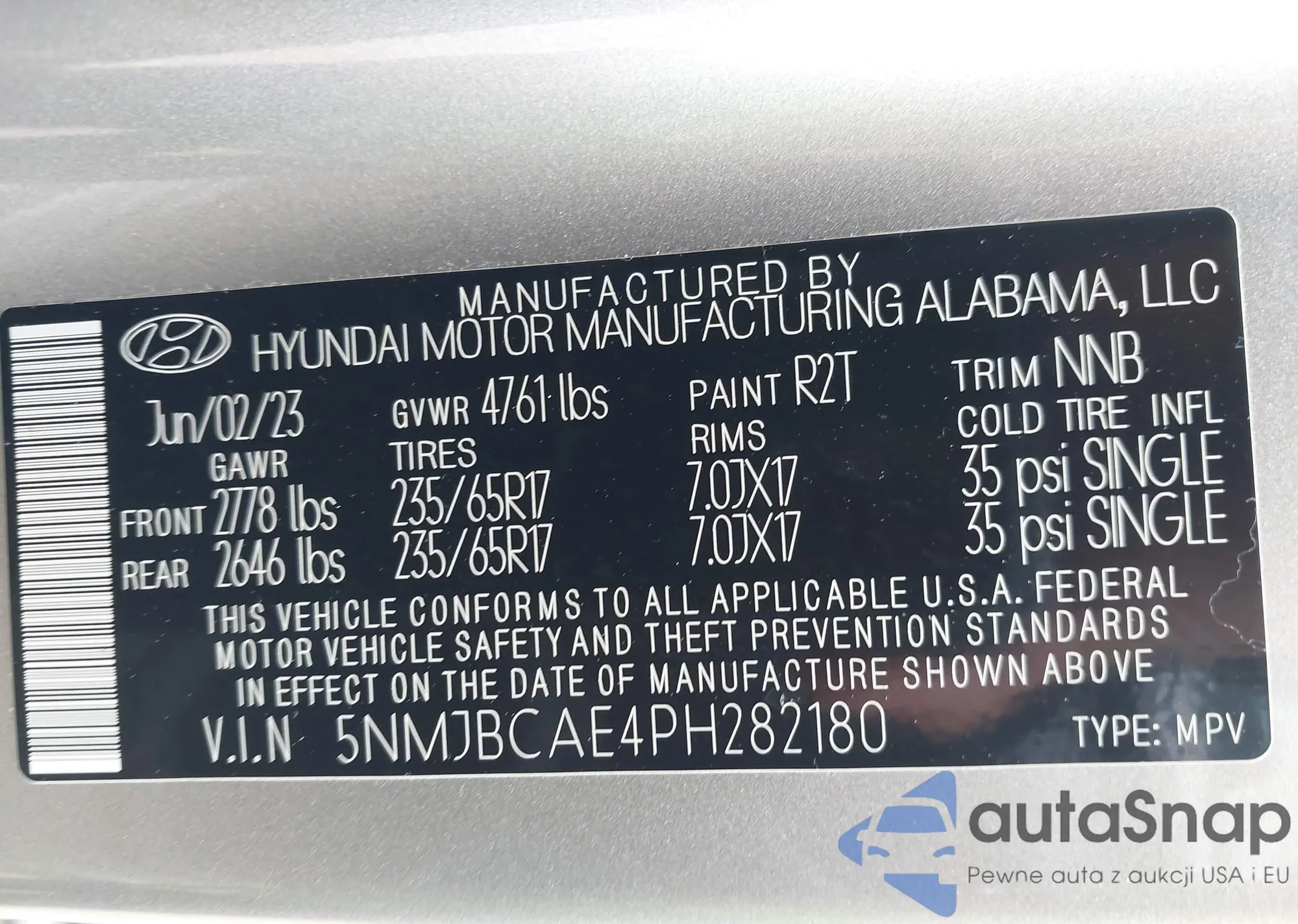 VIN: 5NMJBCAE4PH282180