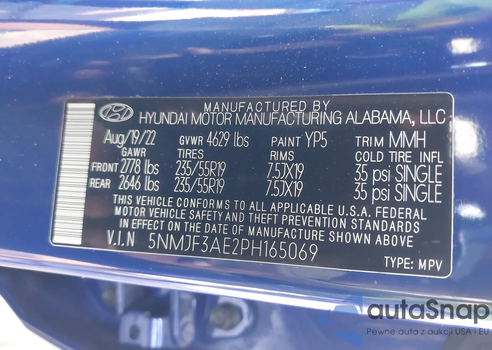 VIN: 5NMJF3AE2PH165069