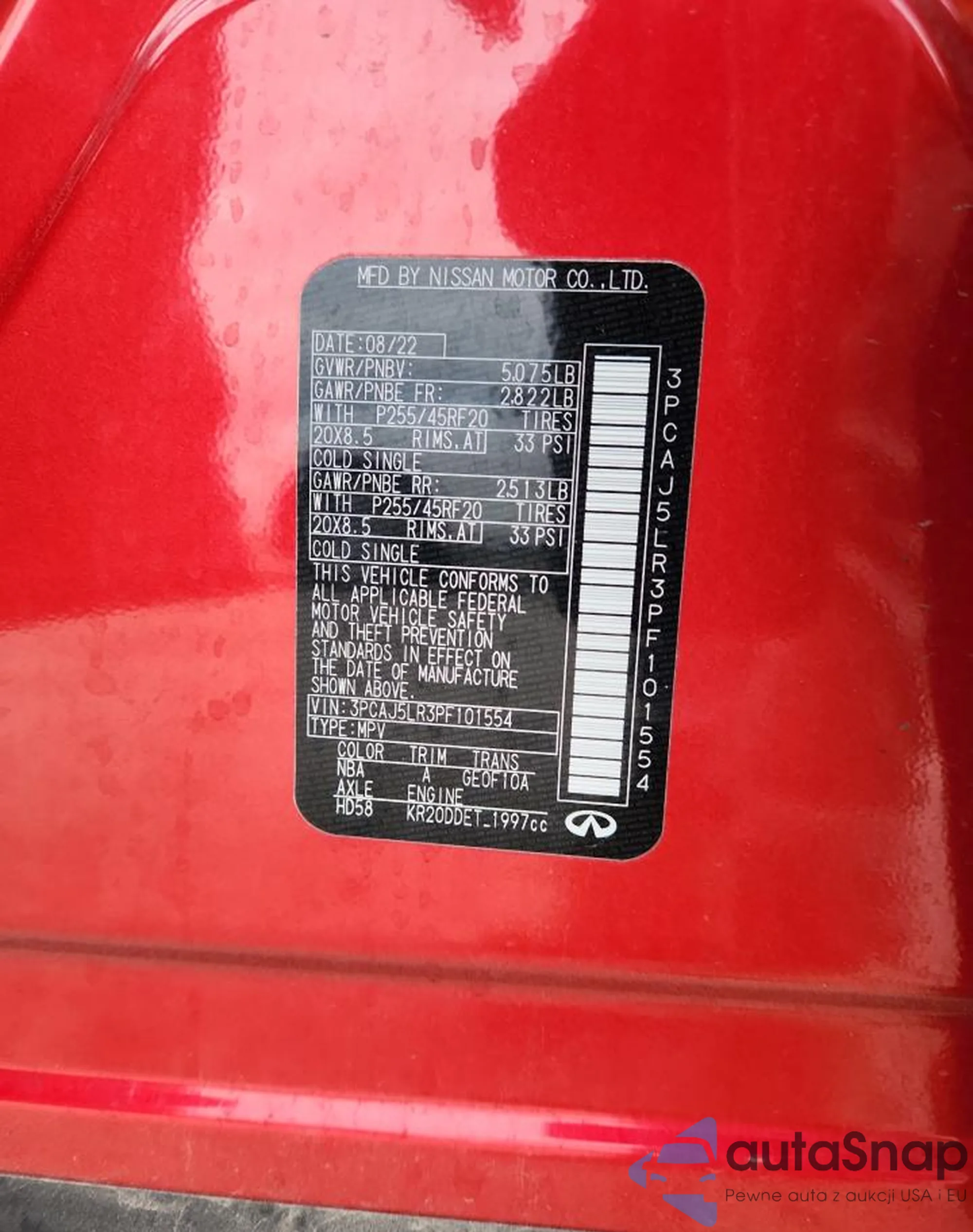 The car Infiniti QX55 2023 (VIN 3PCAJ5LR3PF101554) is sold by an unverified seller. We recommend checking the Carfax report and confirming registration possibilities before purchase.