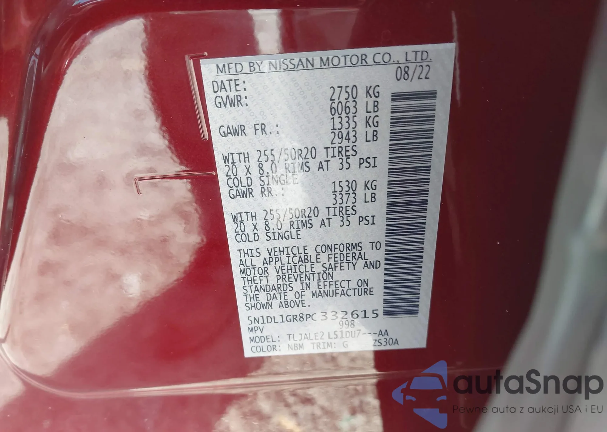 The car Infiniti QX60 2023 (VIN 5N1DL1GR8PC332615) has documents that prevent registration. Export and registration may be difficult. Contact AutaSnap experts to find alternatives.