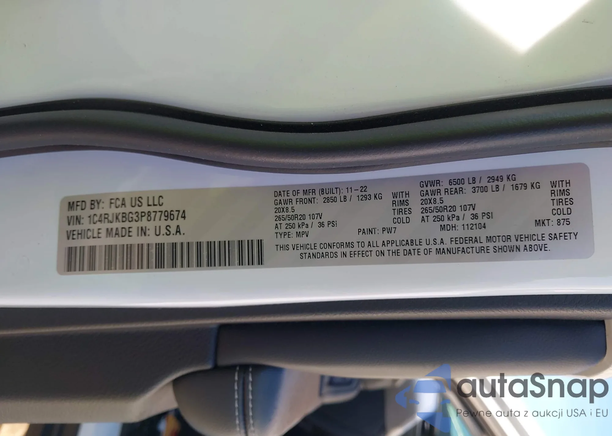 VIN: 1C4RJKBG3P8779674