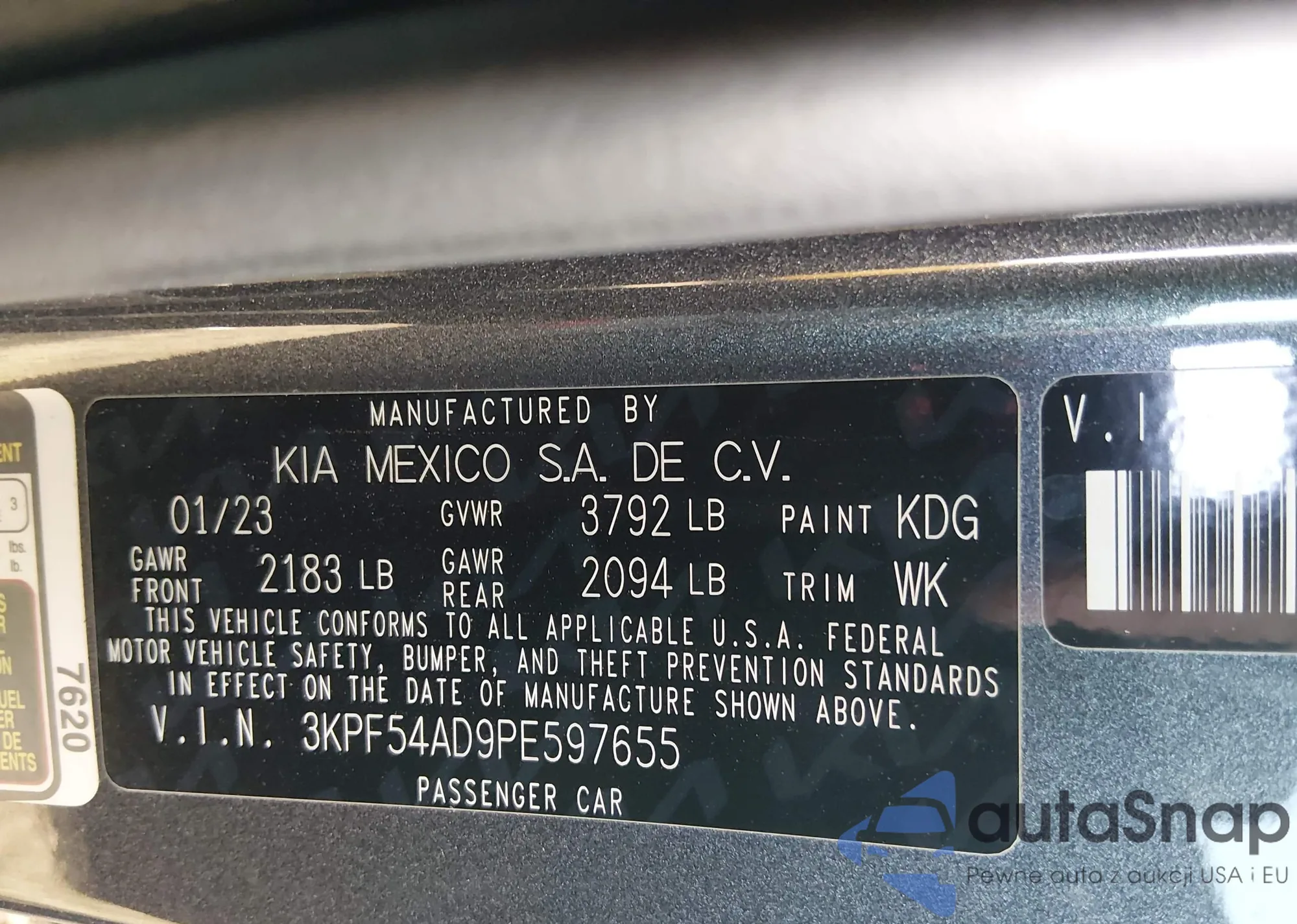 The car Kia Forte 2023 (VIN 3KPF54AD9PE597655) has not been auctioned before. The documents are clean, and the mileage matches or is below the market average. Sold by an insurance company – we recommend purchase. Delivery to the port will take approx. 6–8 weeks.